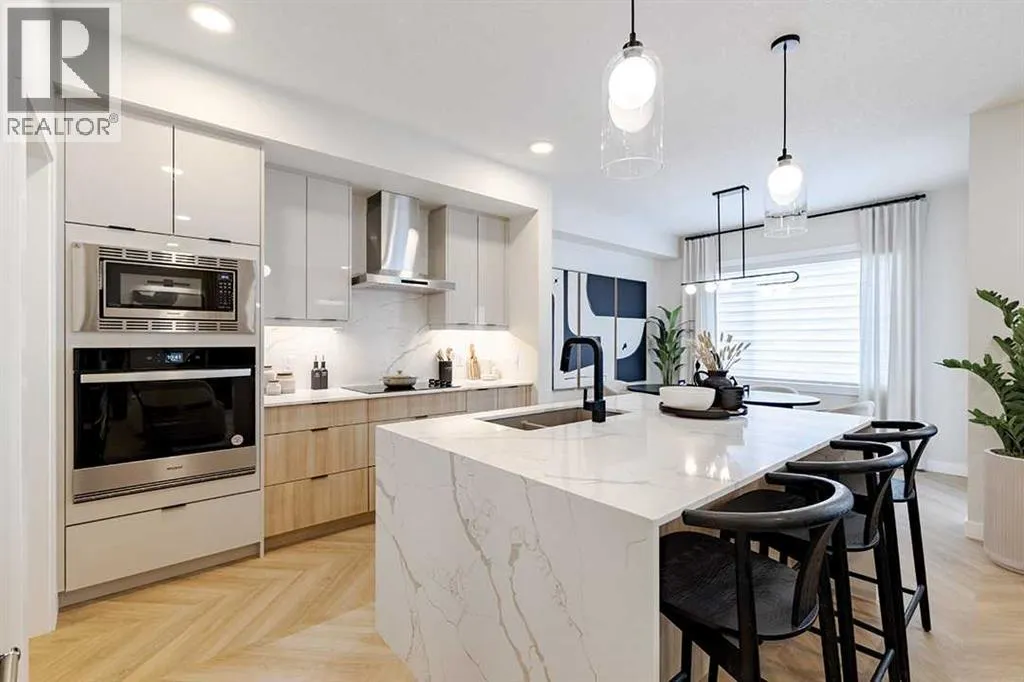 Welcome to the Katalina by Shane Homes, a pre construction front-drive home with a double attached garage located in the community of Rose Ranch. The main floor features a full bedroom and full bathroom with shower, ideal for guests or multi-generational living. The open-concept layout includes a living room with electric fireplace, dining nook, and a kitchen with island seating