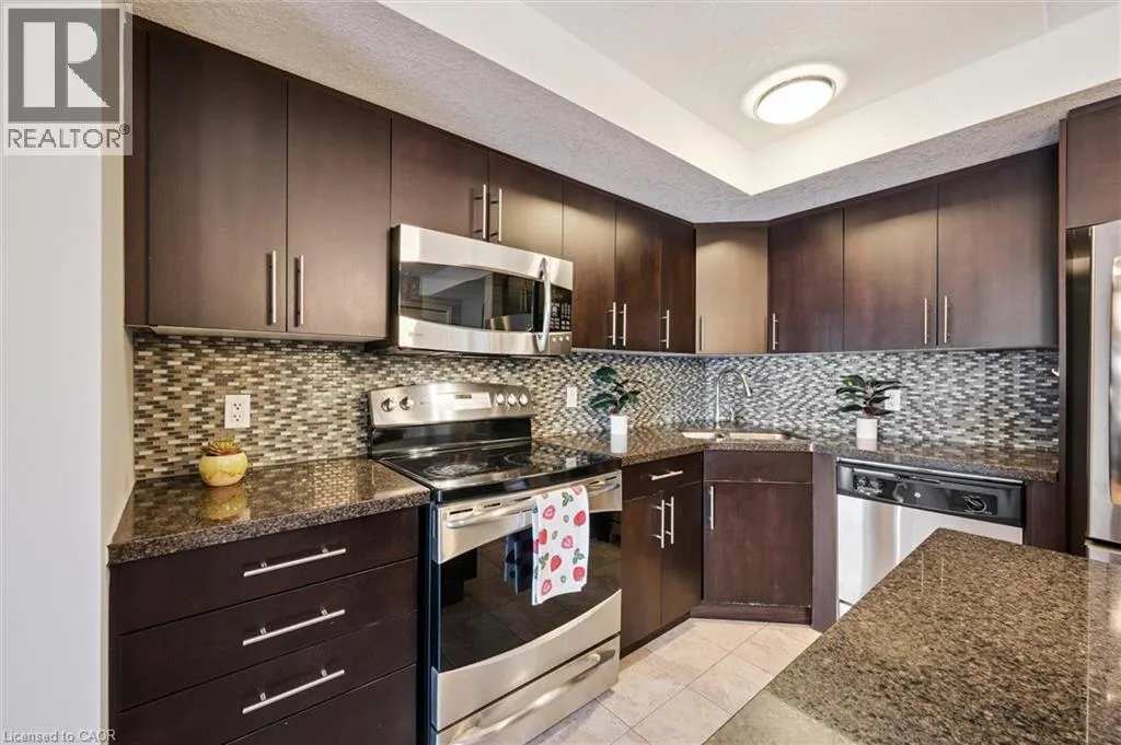 1,095 SQ. FT + 122 SQ. FT Balcony, 2 Parking Spots (1 underground, 1 surface) plus a Locker. This stunning 2 bedroom, 2 bath condo unit is located in sought after Laurel Creek Village Neighbourhood. The 6th floor Eastbridge layout features a very impressive gourmet kitchen. Classic flat profile maple cabinetry that coordinates perfectly with the luxurious granite and high