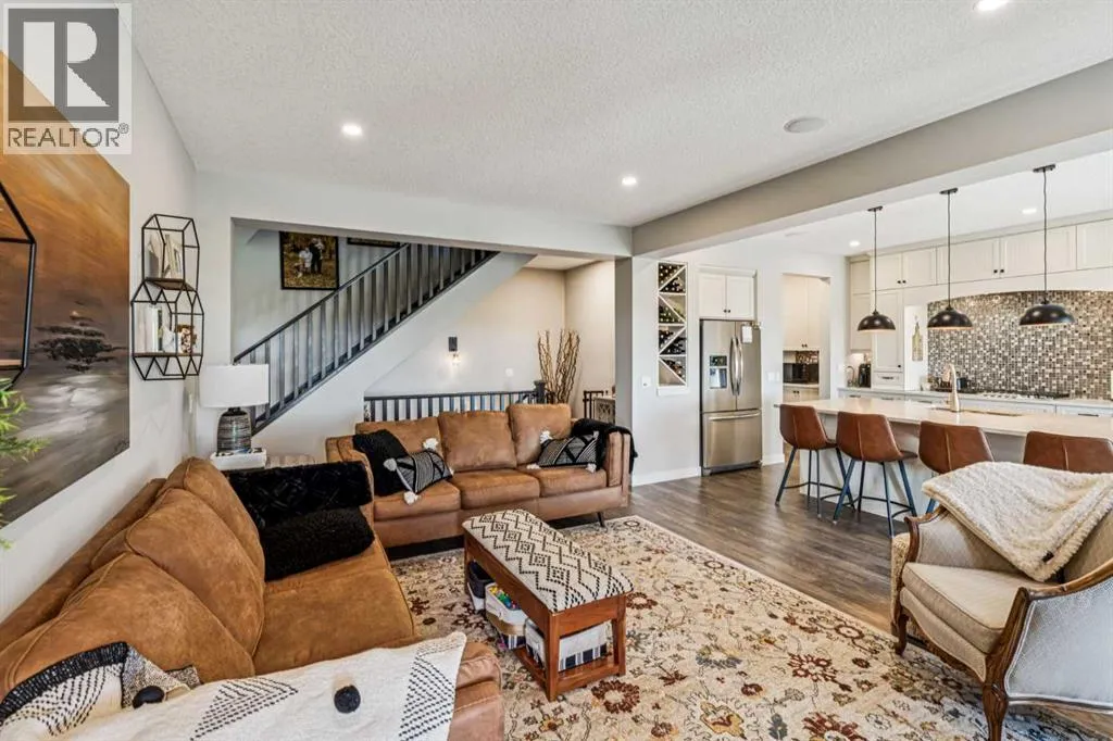 for both entertaining and everyday comfort. The spacious family room flows seamlessly into the dining area and showstopping kitchen, all framed by large windows that capture stunning prairie views.The gourmet kitchen features dual ovens, a 5-burner gas cooktop, sleek countertops, elegant backsplash, and ample prep and storage space. A dedicated nook offers the perfect setup for a coffee bar or extra appliances. A gas line is ready for outdoor grilling on the upper deck, which includes a retractable awning for shade and comfort.Off the kitchen, a large mudroom with custom built-ins leads to a generous 3-car garage—keeping life organized and efficient.Upstairs, you’ll find four bright and spacious bedrooms. One includes a built-in Murphy bed for added flexibility. A vaulted-ceiling bonus room provides the perfect space for movie nights, gaming, or a quiet retreat.The luxurious primary suite overlooks uninterrupted prairie views with no rear neighbors. The spa-inspired ensuite features a soaking tub, dual vanities, a large glass shower, and tile finishes. A massive walk-through closet connects directly to the upstairs laundry room for maximum convenience.The finished lower level has been extensively renovated to add a fully legalized in-law suite that expands your living space with a cozy sitting area and fireplace, a second kitchen—ideal for multi-generational living or guests—a large bedroom, and a full bathroom with custom walk-in closet. A second laundry area with stacked washer and dryer adds extra practicality.In-ceiling speakers throughout the home and o utdoor areas create the perfect ambiance for entertaining. Step out onto the beautifully landscaped yard, complete with irrigation system and four raised garden beds. Five unique outdoor seating areas, including a fire pit space, make this backyard ideal for gatherings, relaxing, or play.A charming playhouse and hot tub (both negotiable) offer even more ways to enjoy this incredible outdoor retreat.This exceptional home combines thoughtful design, high-end finishes, and unmatched comfort—inside and out. Come experience the perfect blend of elegance, space, and functionality. (id:64429)