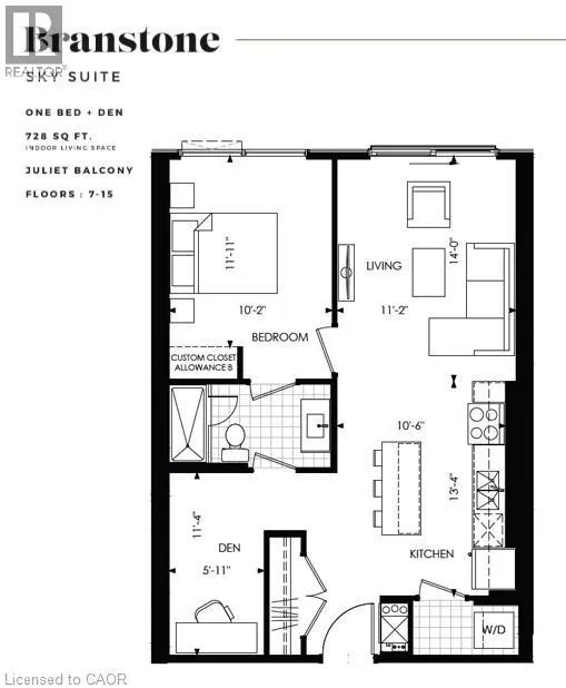 This 1 bedroom + Den Branstone model on the 10th floor is available for rent as of April 1st, 2026 (or later) at $2,150/month in the desirable CIRCA 1877 building in Uptown Waterloo! Beautifully finished unit with 730 SQFT & a Juliette balcony with beautiful North-Western views. Open concept Kitchen with 4 appliances included, granite counter tops, subway style