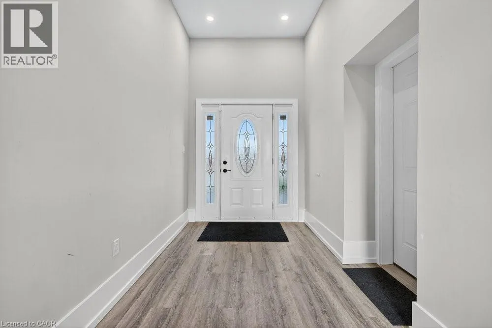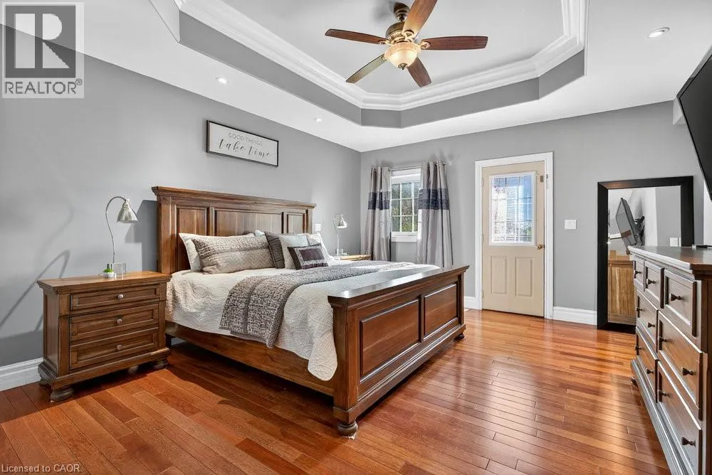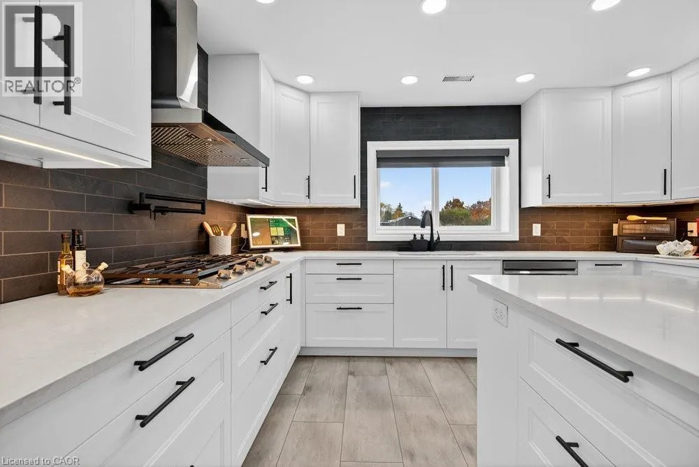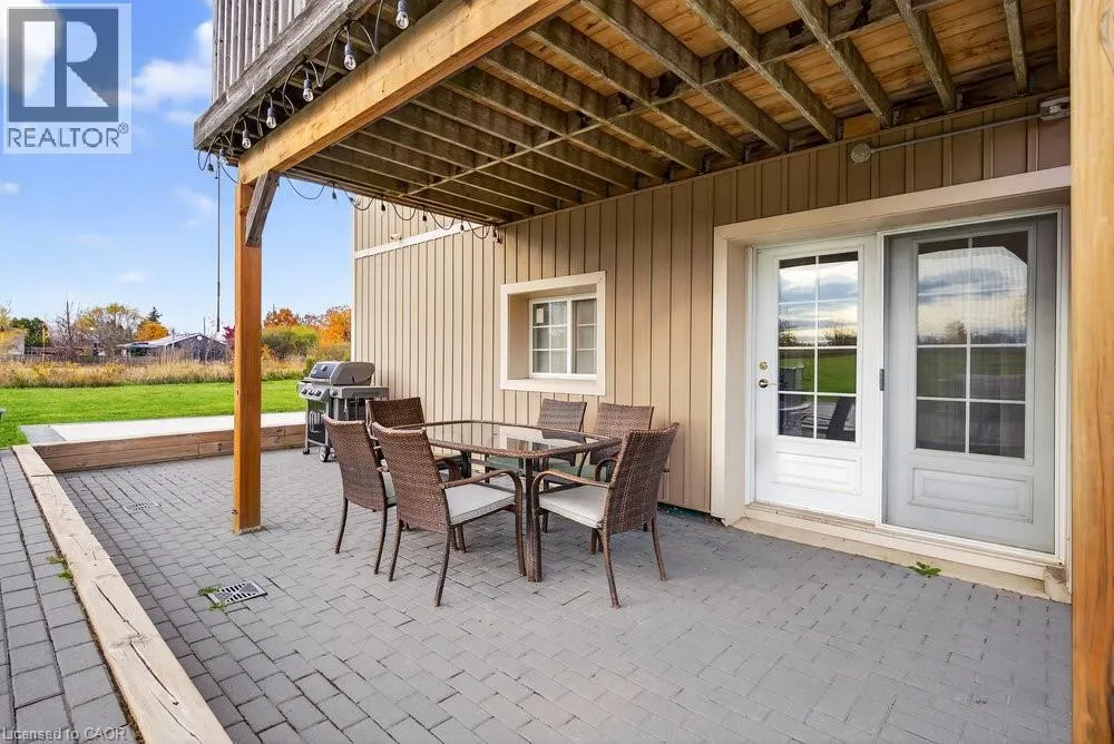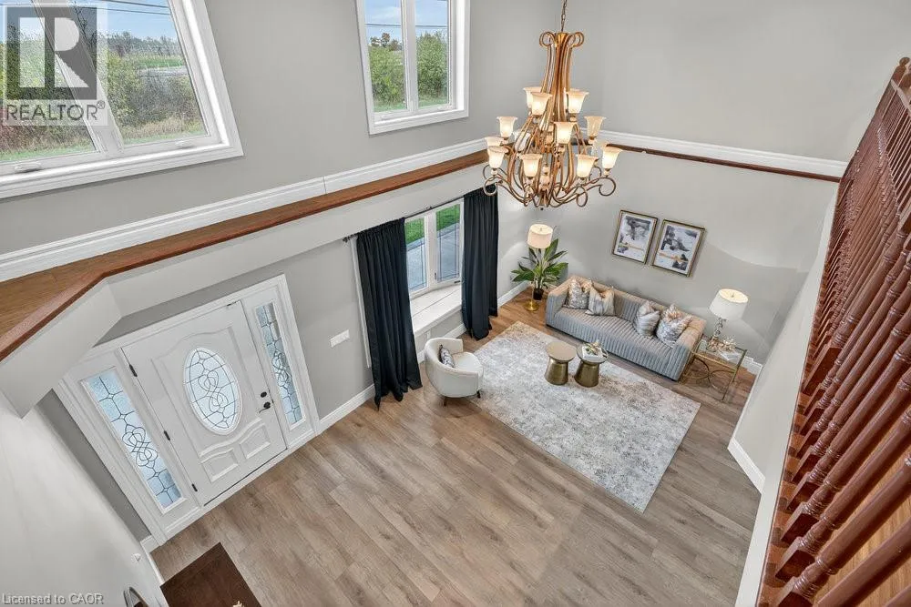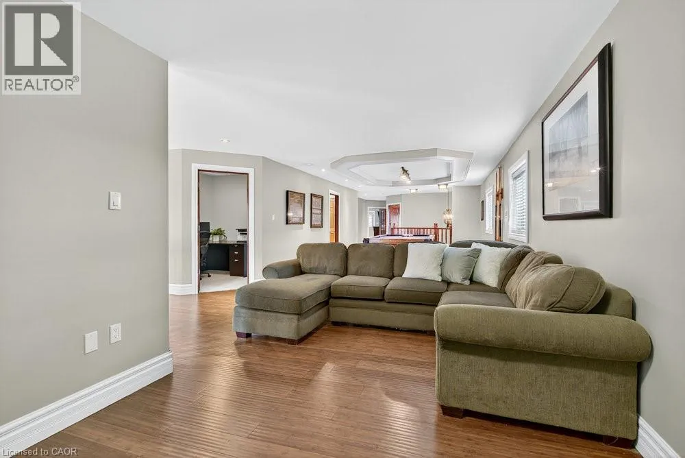or a home business. Step inside to a bright, open-concept layout featuring a grand two-story front sitting room, spacious living and dining areas with a two-sided gas fireplace, and a beautifully updated kitchen (2024) with quartz counters, built-in appliances, a large island, and breakfast bar. Enjoy main and second-floor offices, a generous mudroom with custom built-ins, and flexible living and storage spaces. Entertainment options abound with a games room, theatre room, and multiple gathering areas. Recent upgrades include luxury vinyl and hardwood flooring (2024), designer ceilings, updated baths, new lighting, pot lights, and fresh paint. Outside, enjoy an attached drive-thru quad garage with double storage addition (six roll-up doors), extensive concrete driveways, patios, and 55 privacy cedars for a peaceful retreat. Relax with morning coffee or sunset views from the south-facing primary balcony. With updates to the roof, furnace, and AC, this move-in ready home offers comfort, abundance, and connection to both nature and convenience. (id:62650)