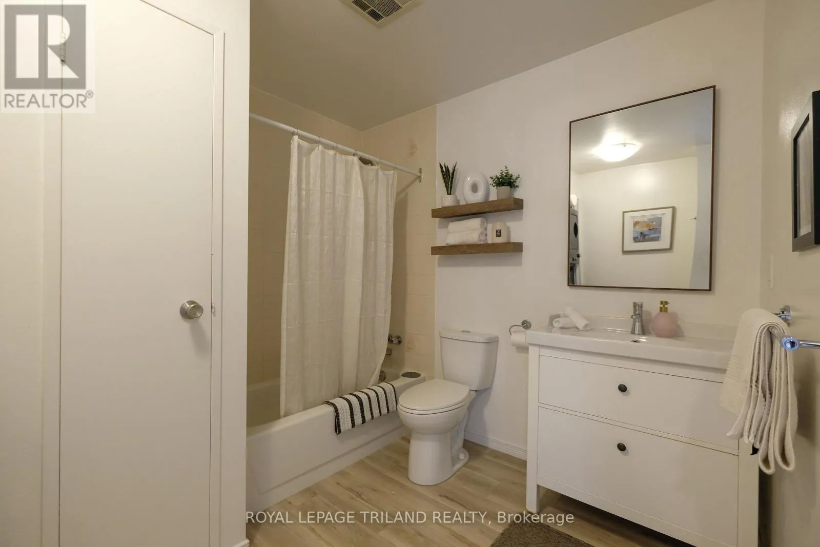 Top floor with gorgeous view facing east that overlooks the tree tops and parking area. Very desirable unit that’s warmer in the winter and cooler in the summer. Freshly painted with modern laminate flooring. Large storage room for off-season sports equipment and extra closet space with laundry in unit. Granite kitchen counter top and 5 appliances.
