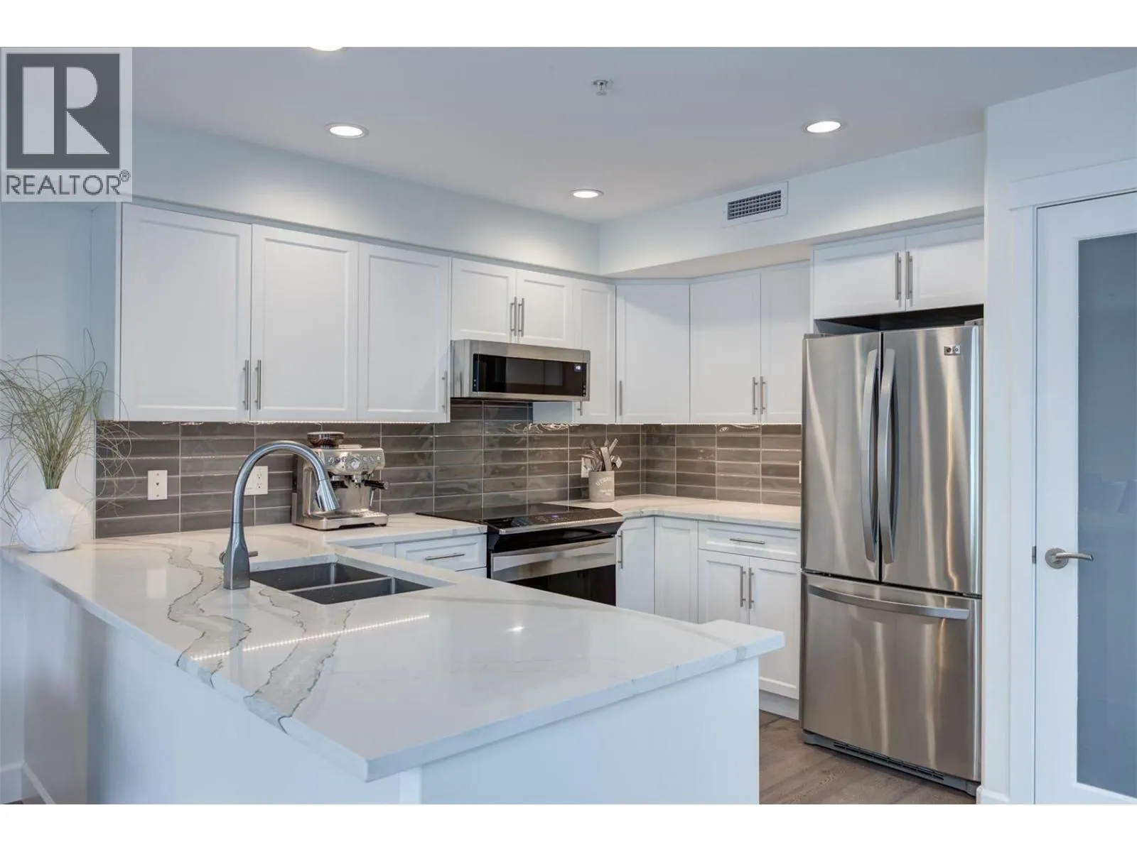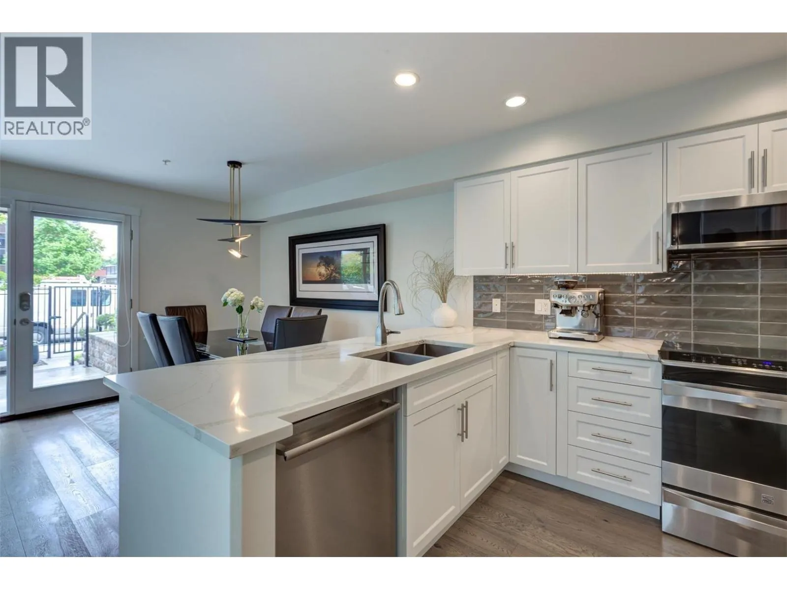 SOPHISTICATION AND LUXURY, PET FRIENDLY, 2 bedroom + den Brownstone style TRUE CORNER with PRIVATE ACCESS through YOUR OWN BEAUTIFUL FULLY FENCED PATIO AND COURTYARD. Located in the highly desirable, prestigious, popular and trendy Pandosy District known for its unique shopping, coffee houses, pubs, restaurants, groceries, + only a 1/2 block to Okanagan Lake, walking distance to Kelowna General