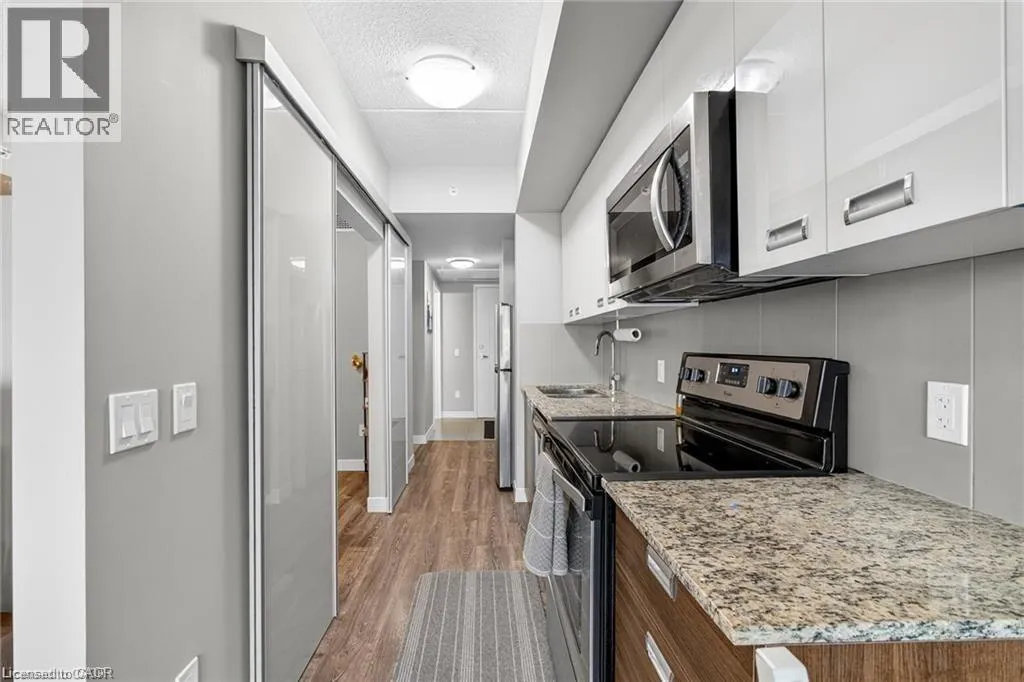 Turn-key investment or the perfect starter condo in the heart of Waterloo’s University District! Unit 406 is 465sqft and offers a bright 1 bedroom, 1 bathroom layout. Upgraded finishes are ready for it’s next owner, with a modern kitchen that has granite countertops, stainless steel appliances , in suite laundry, carpet free flooring and a private balcony. The building is