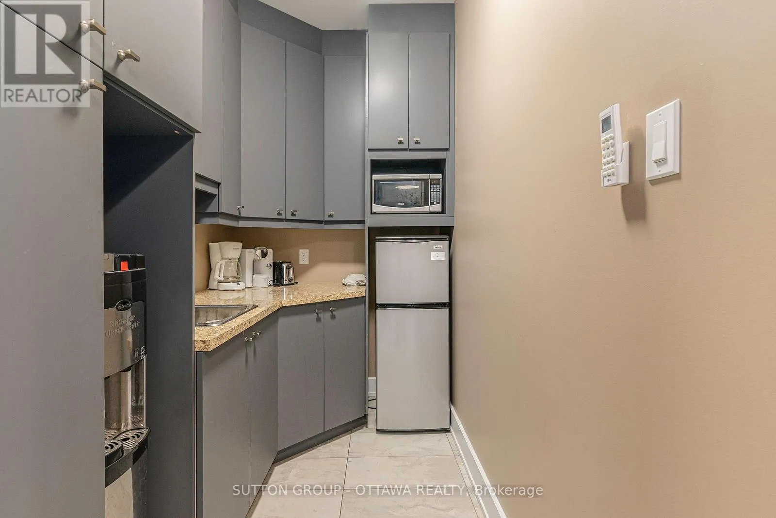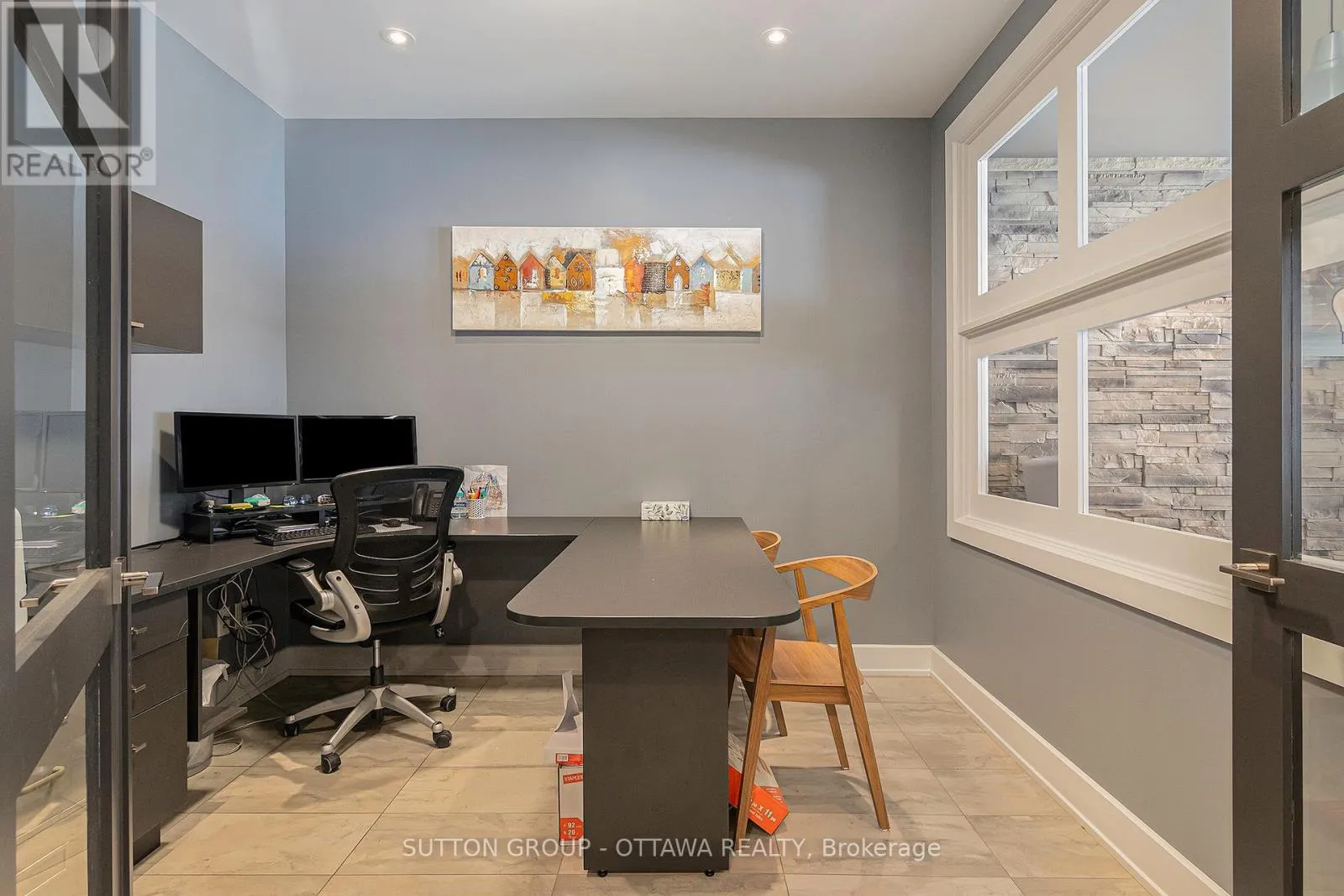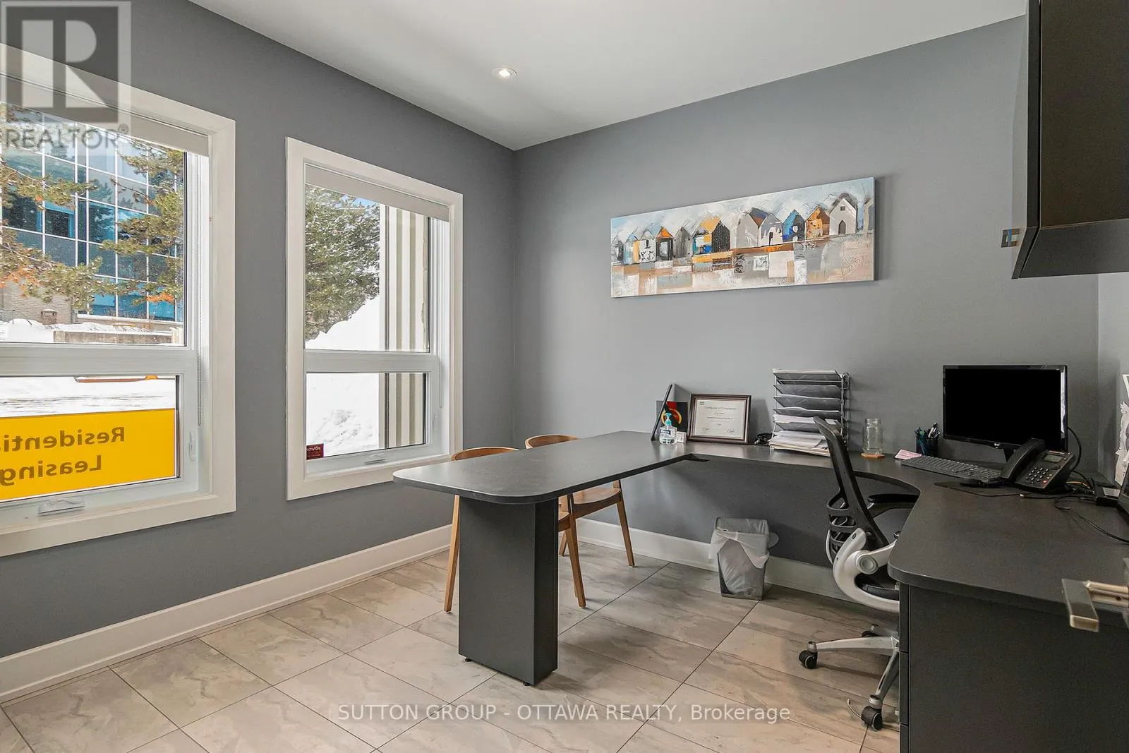 High-end, fully finished end-unit commercial office condo located in the St-Laurent Business Park. The space features a welcoming reception area, two private enclosed offices, and an open-concept work area with three workstations and a central island. Additionally, there is a dedicated storage and printing area, as well as a kitchenette and accessable bathroom. 2x Fujitsu heating & air conditioning system