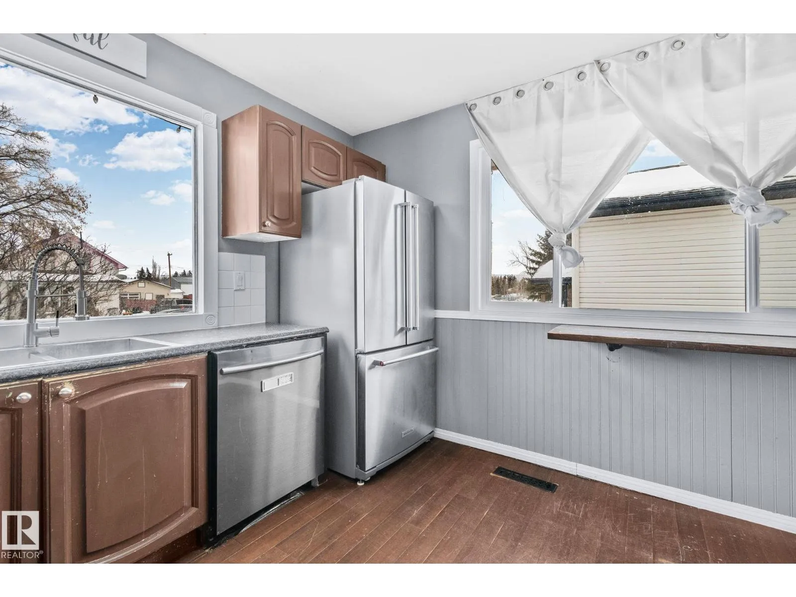 This 1,075 sq. ft. bungalow sits on a very large lot in the family-friendly community of Legal. The main floor offers three good sized bedrooms and a full bathroom, the fully developed basement includes a fourth bedroom, second bathroom, and a cozy gas fireplace, providing flexible living space. The property features a double detached garage with both front-drive as well