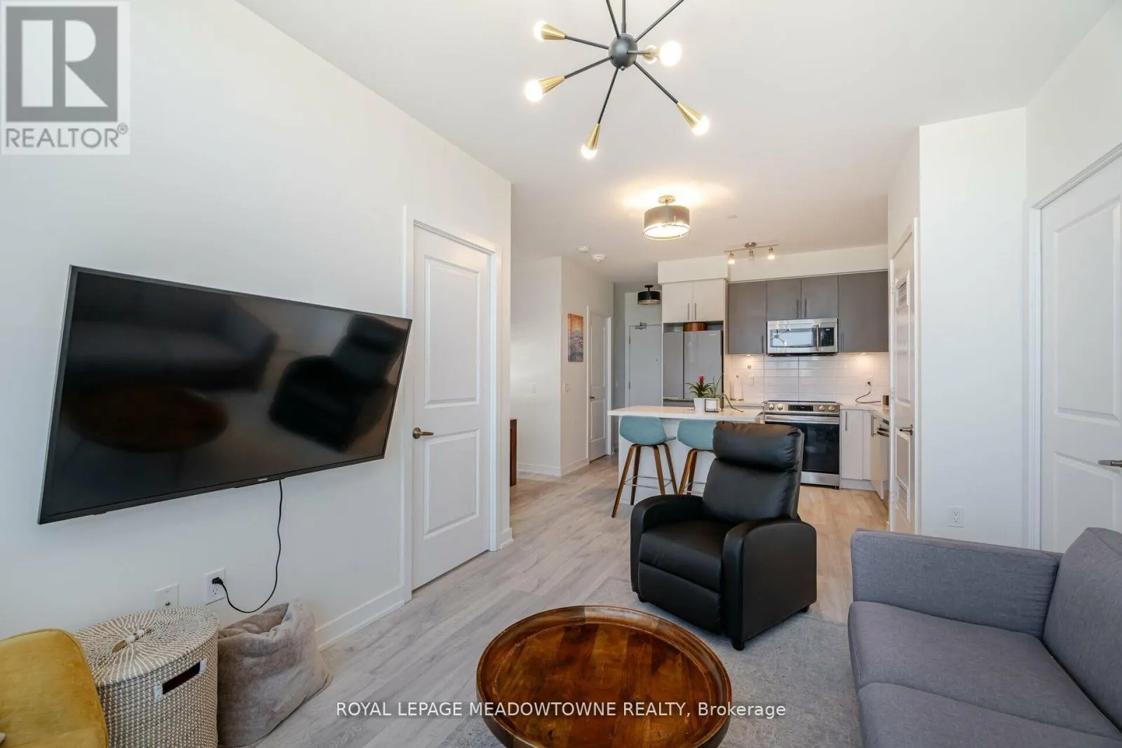 Welcome to this exceptional penthouse offering 825 sq. ft. of refined living space with stunning, unobstructed views. This 2-bedroom plus den residence is thoughtfully designed with a modern, open-concept layout that maximizes both space and natural light. The contemporary kitchen features elegant quartz countertops, stainless steel appliances, and sleek modern cabinetry, seamlessly flowing into the living and dining areas. Enjoy