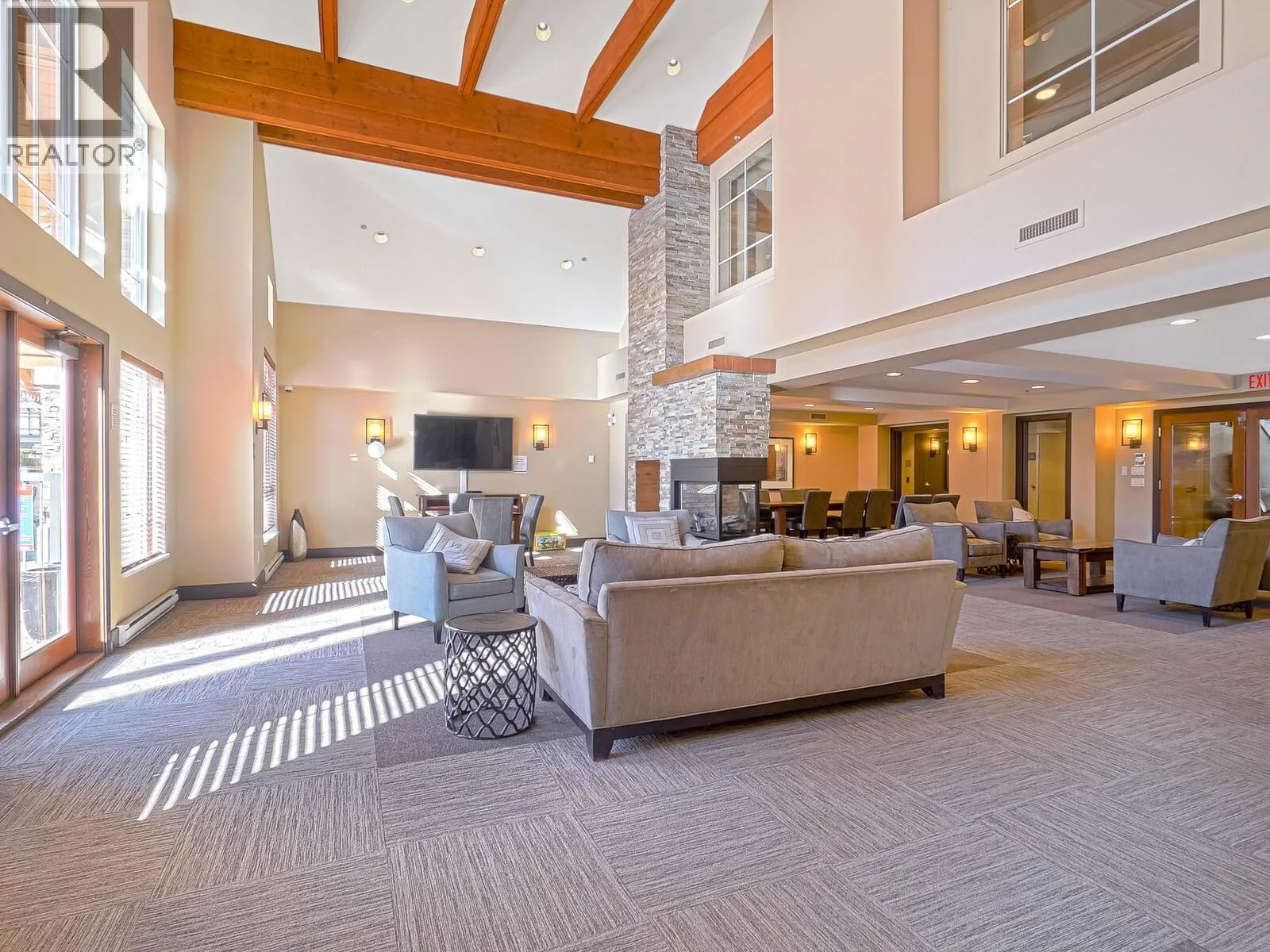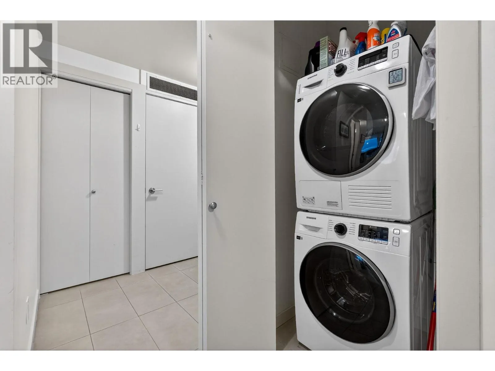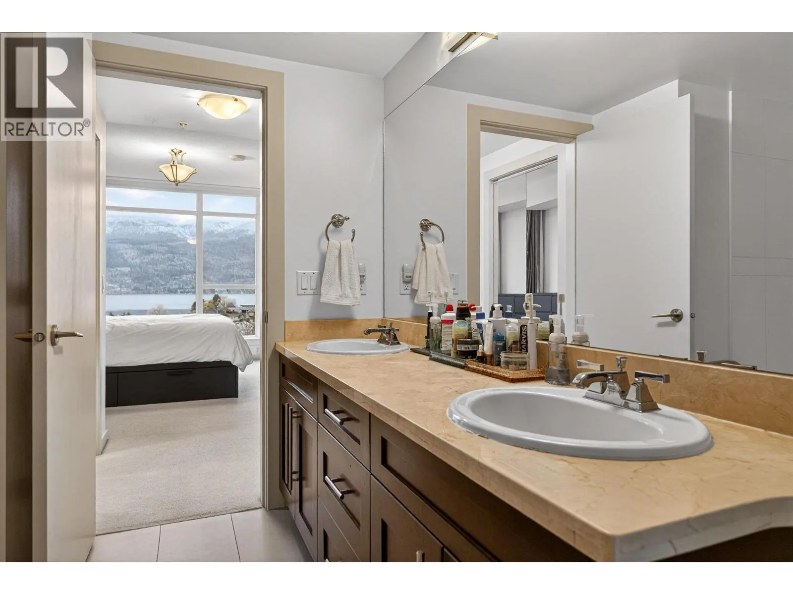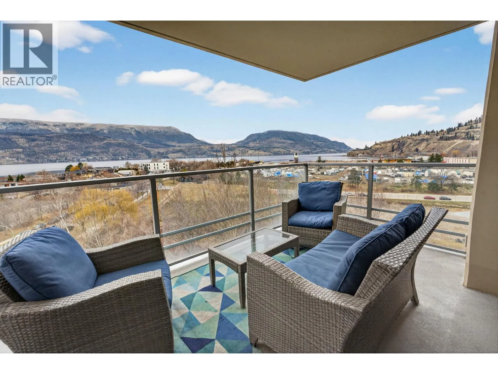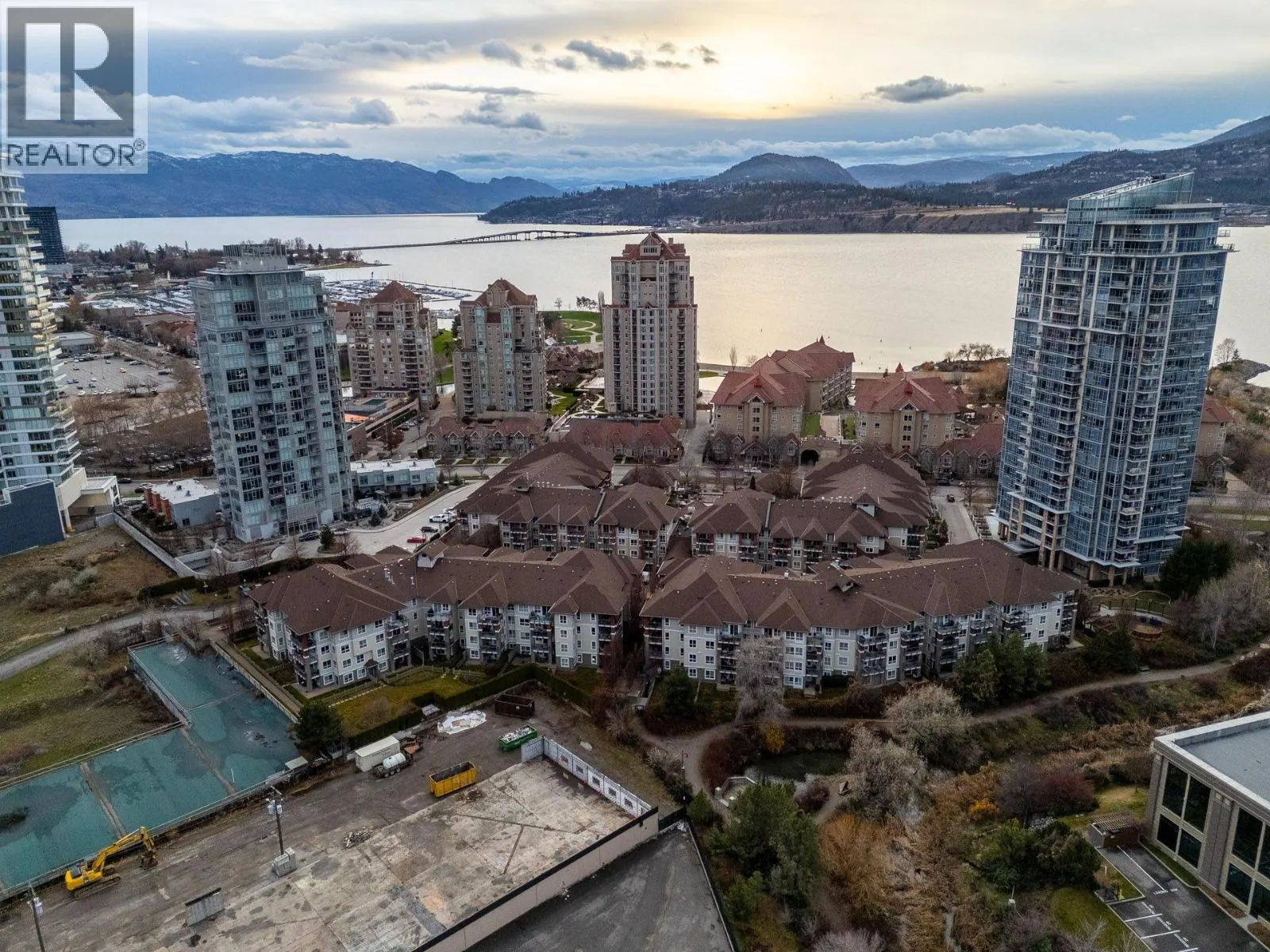 Gorgeous 8th-floor condo in the Skye Tower at Waterscapes. This 2-bedroom plus den, 2-bath home offers a sought-after layout with Okanagan Lake and mountain views. Floor-to-ceiling windows fill the space with natural light, paired with a modern kitchen featuring granite countertops, stainless steel appliances, a gas stovetop range, and peninsula seating. The living room includes a built-in electric fireplace and