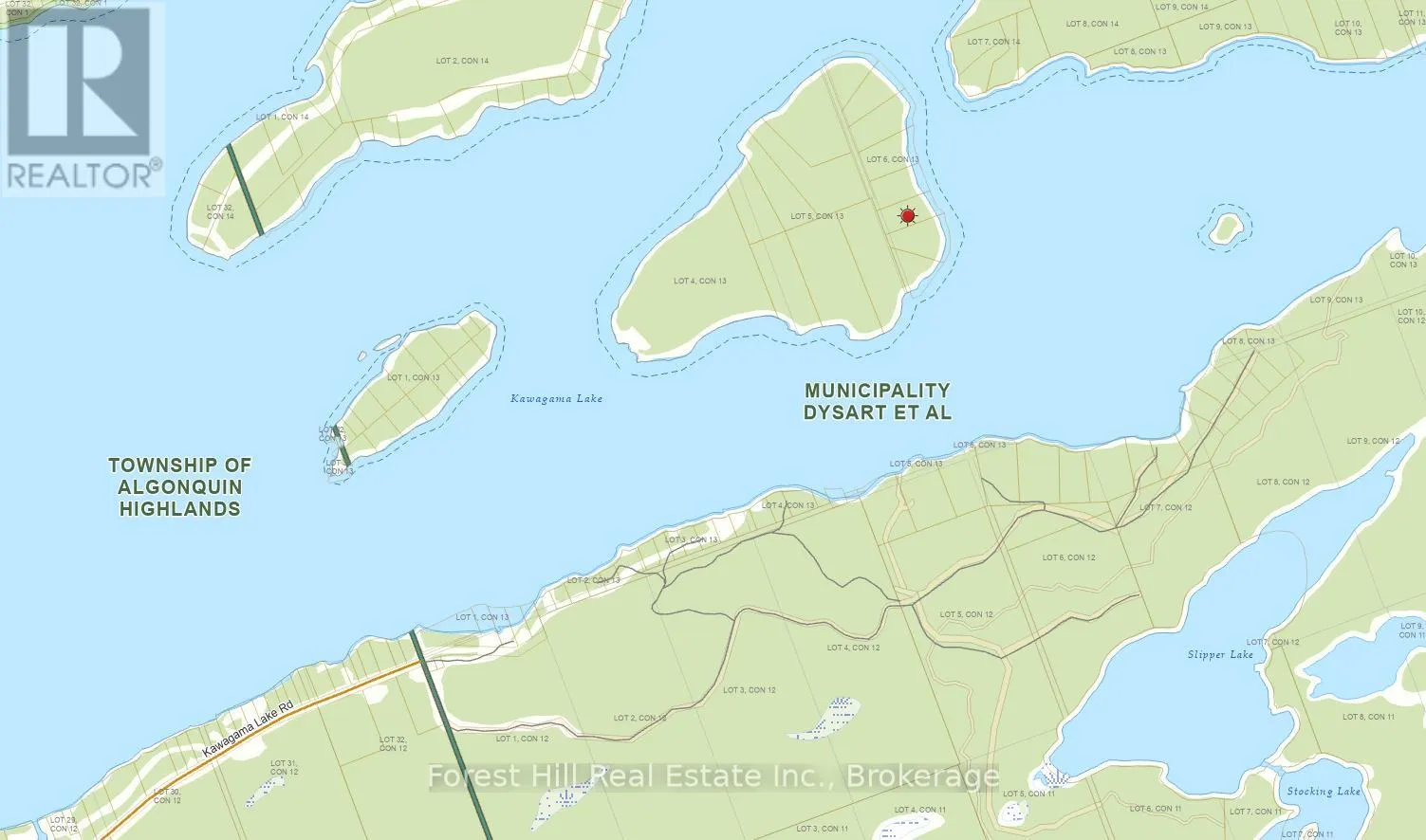 Maturely treed, deep building lot on Haliburton’s largest lake with 309 feet of variable shoreline and 4.65 acres. Electrical & telephone services are available & nearby — see quote/estimate on file, where adjacent owner is willing to share cost to install electrical services on the shared lot line with his other adjacent lot to the north. Various good sites to