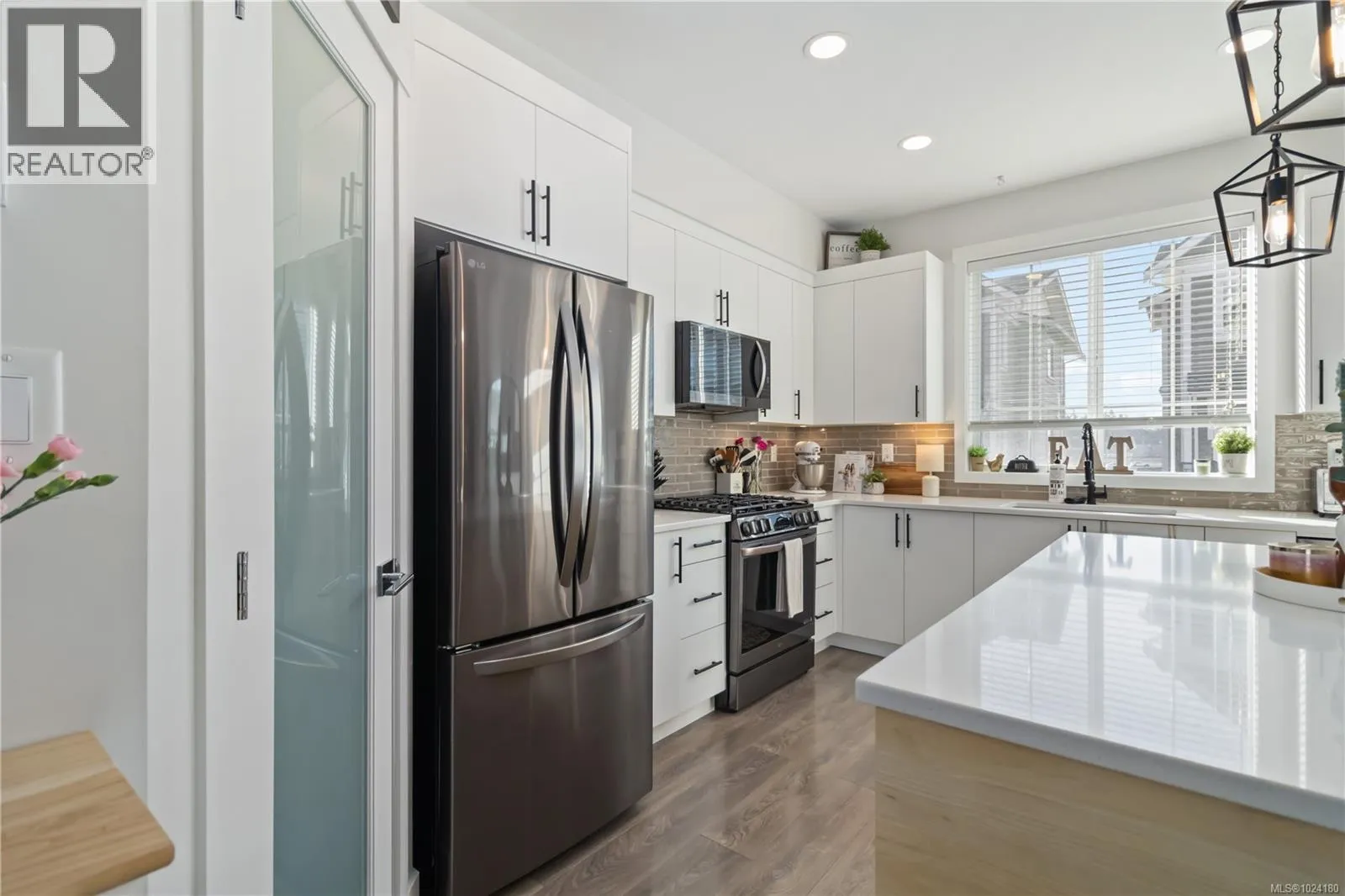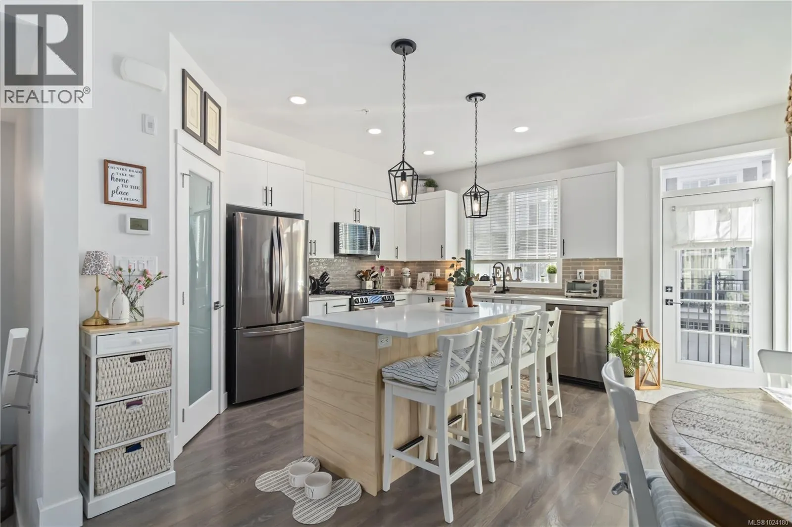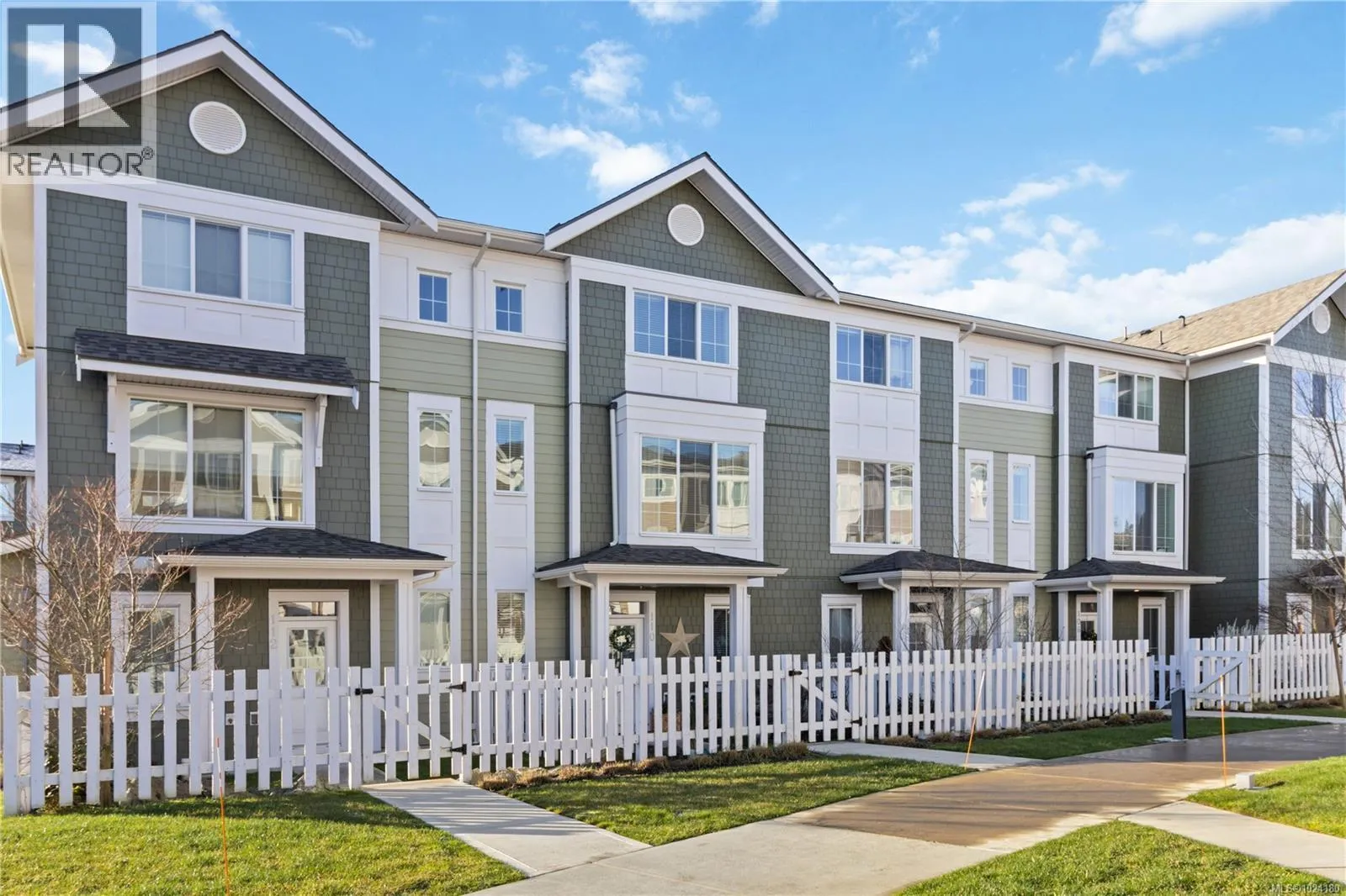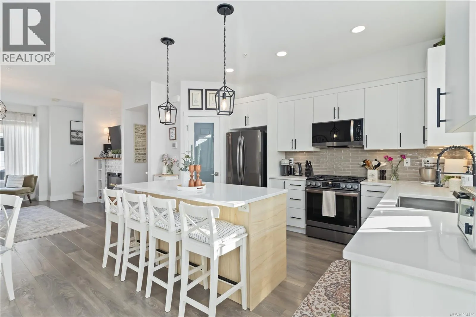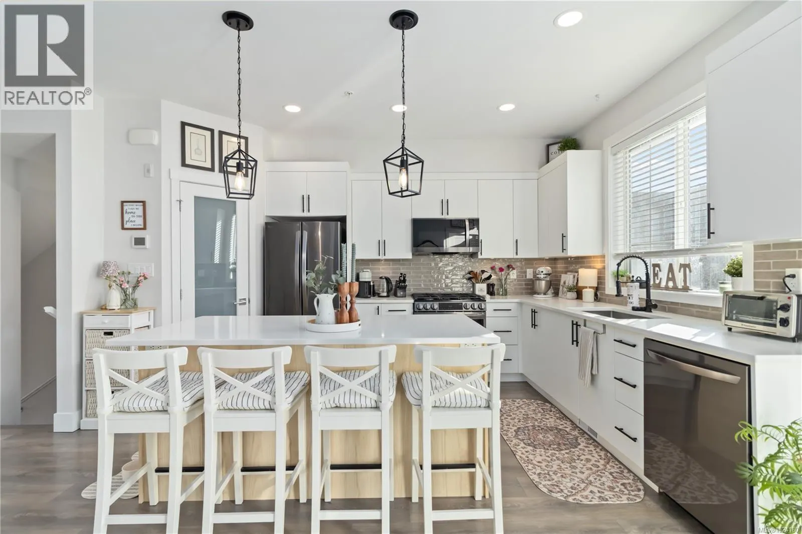 Experience ”Compass” in Royal Bay! This 2021 GableCraft luxury townhome is loaded with upgrades. The open main floor features 9′ ceilings, a custom built-in electric fireplace with ambiance settings, and a chef’s kitchen with a new island, walk-in pantry, and new black stainless appliances (less than 1 yr old) including a gas range. Enjoy a 20’+ sunny balcony with peek-a-boo