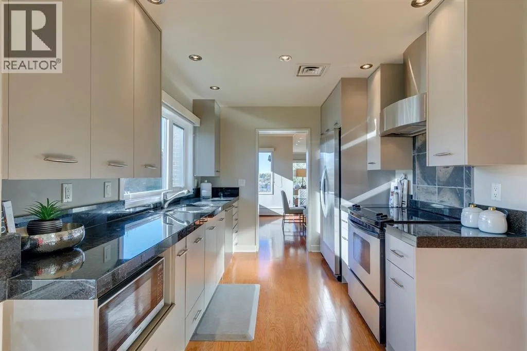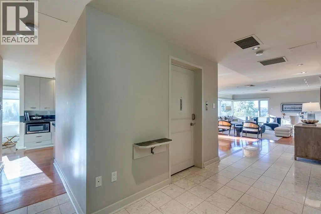 Experience Executive New York-style living in one of Calgary’s most prestigious and intimate communities, Eagle Ridge. Your journey into luxury begins the moment you step into the elevator, which transports you directly to your private foyer, unveiling over 2,000 square feet of sophisticated living space. This exclusive residence immediately impresses with gleaming hardwood flooring that guides you through an expansive