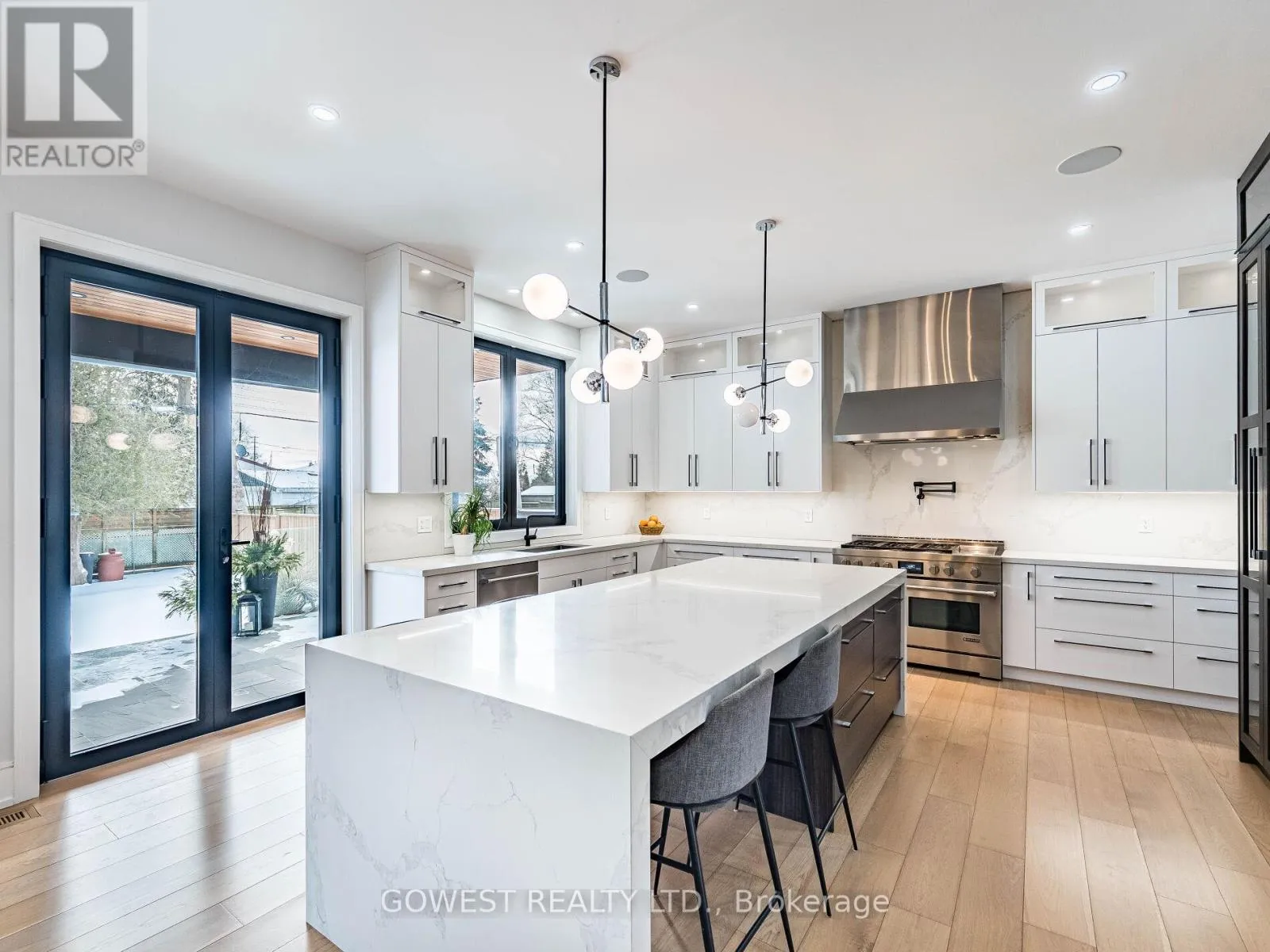 Welcome to custom luxury residence, located in the highly desirable Mineola neighborhood. This Home is a masterpiece of architectural innovation & modern luxury. 19 Ft Ceiling Foyer w/striking white oak staircase w/glass railings, sets the tone for the refined sophistication that flows throughout the home. High performance tripple-pane tilt & turn aluminum European windows flood the interior with natural
