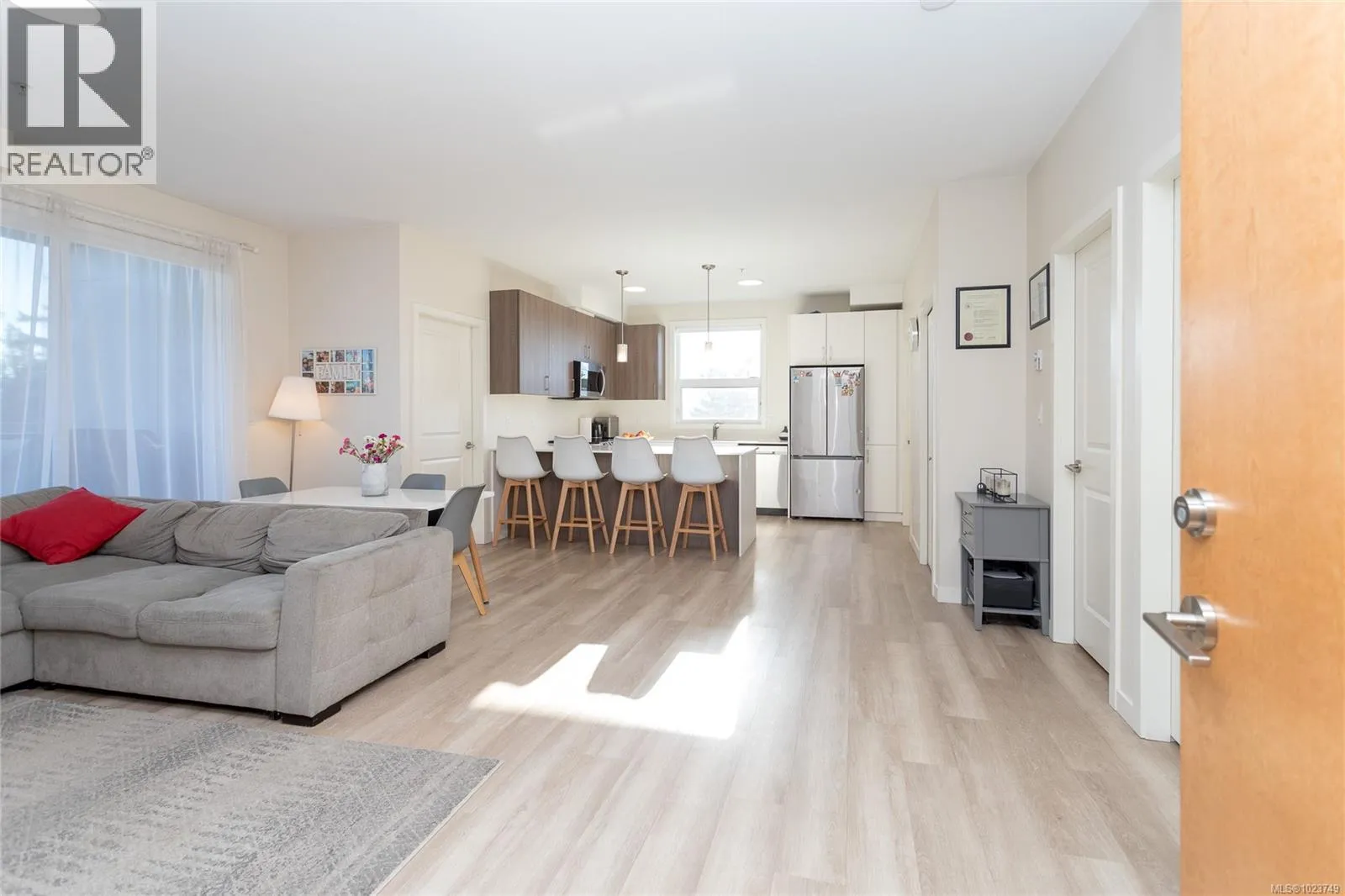 Welcome to Pacific Trilogy, a modern development in the heart of Langford. This private, bright southeast-facing corner unit offers 1028 sq/f of well-designed living space with 2 bedrooms plus a den and 2 full bathrooms with great separation. Enjoy 9-foot ceilings, large windows for abundant natural light, and a spacious private covered balcony. The contemporary kitchen features European-style