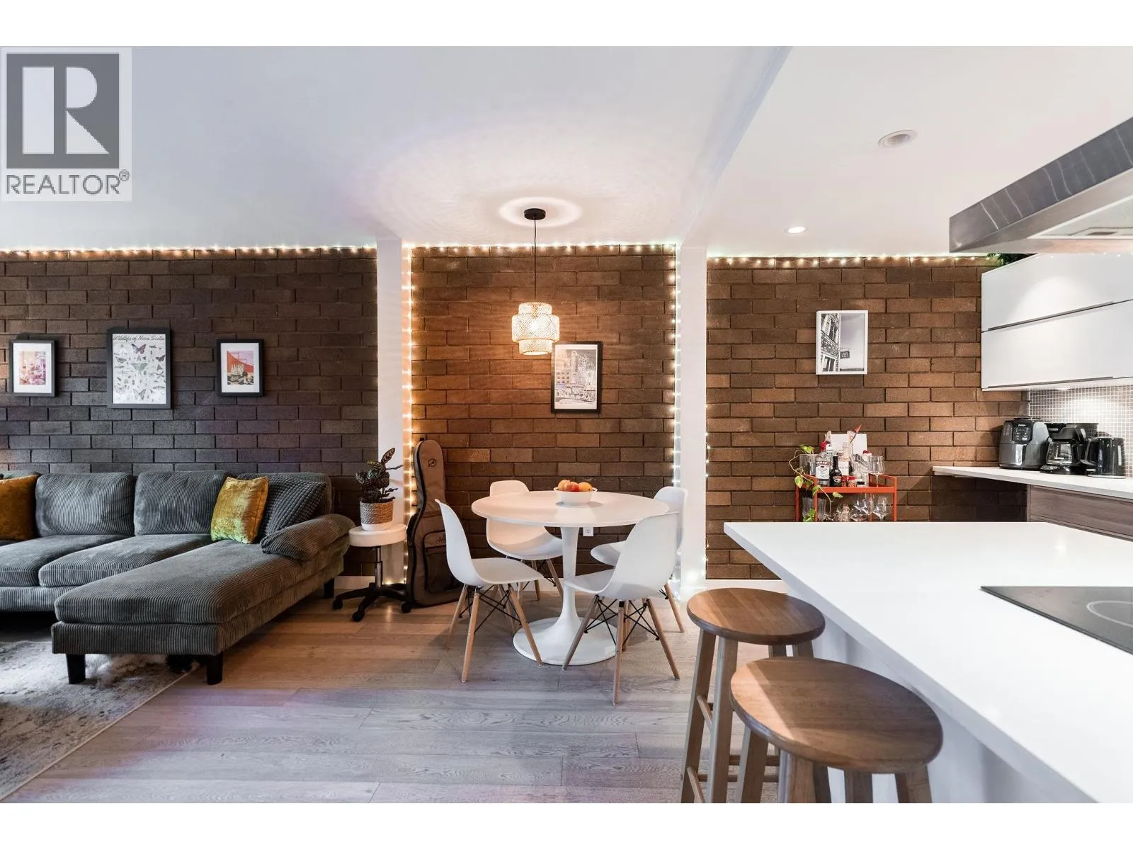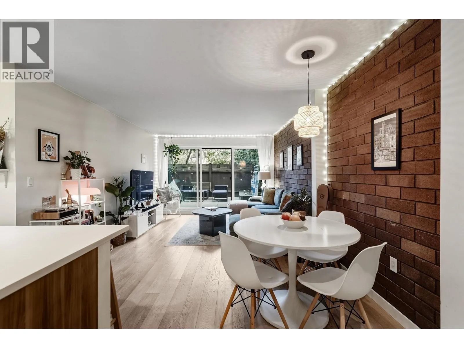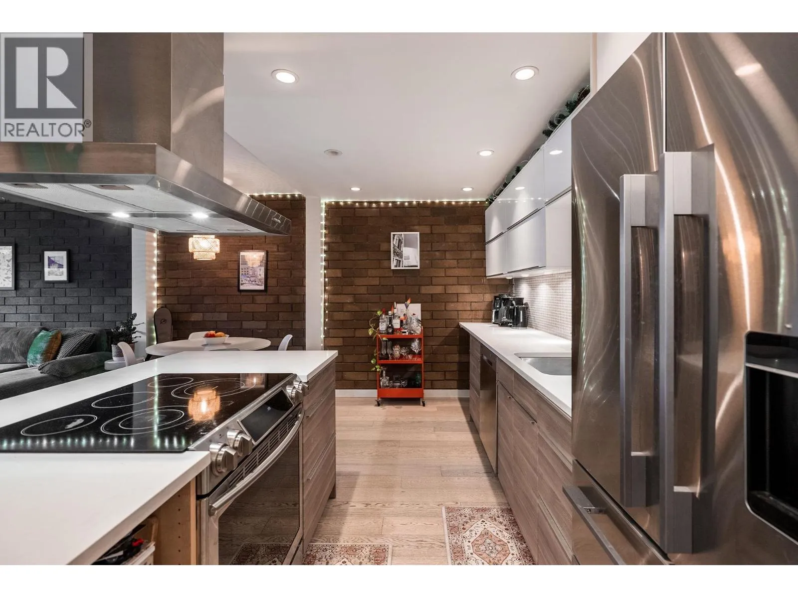 SPECTACULAR 280+sf PATIO from this FULLY RENOVATED loft style garden home at Landmark Belvedere right off Main Street. An entertainer’s dream with striking architectural brick feature wall, engineered H/W floors, floor-to-ceiling windows & seamless indoor-outdoor flow. Open Chef’s Kitchen with statement island range hood, S/S appliances, recessed lighting & sleek modern cabinetry. Spacious living & dining area opens directly to