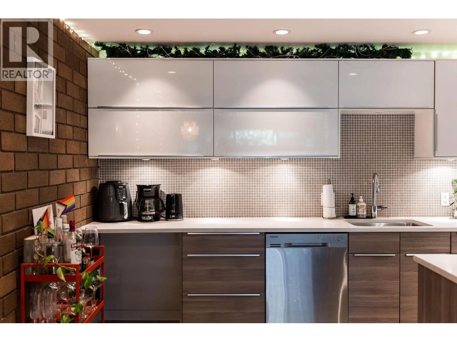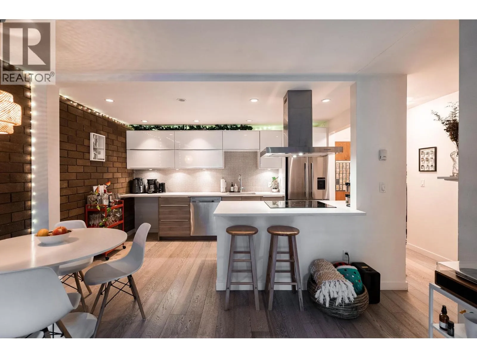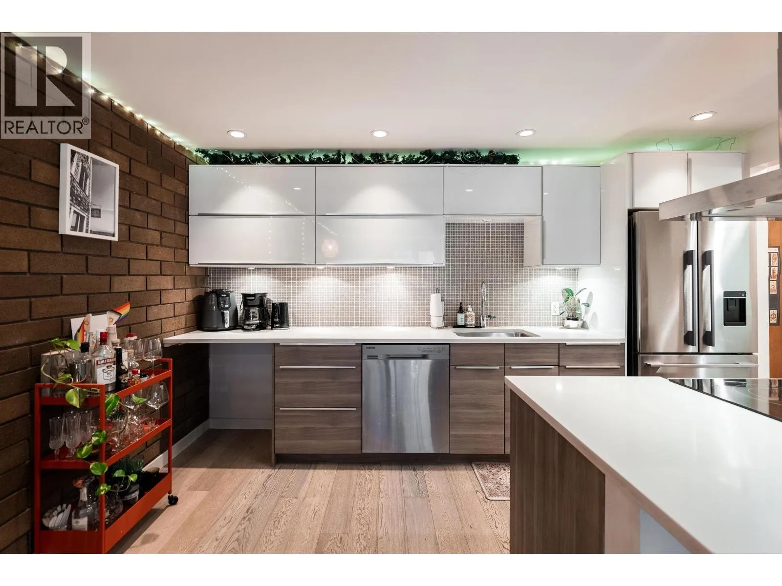 SPECTACULAR 280+sf PATIO from this FULLY RENOVATED loft style garden home at Landmark Belvedere right off Main Street. An entertainer’s dream with striking architectural brick feature wall, engineered H/W floors, floor-to-ceiling windows & seamless indoor-outdoor flow. Open Chef’s Kitchen with statement island range hood, S/S appliances, recessed lighting & sleek modern cabinetry. Spacious living & dining area opens directly to