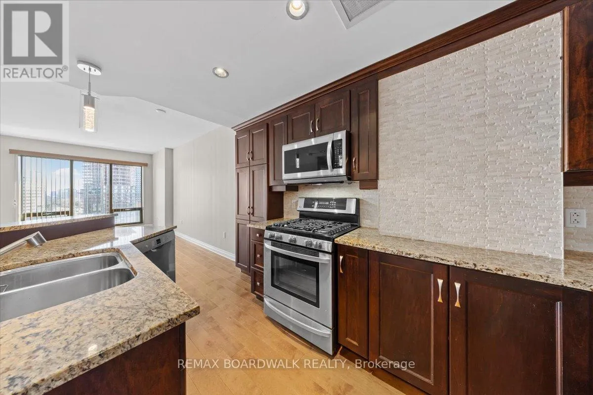 Luxury one bedroom at 90 George St on the 10th floor w/a beautiful unobstructed southern sun filled view, secure entrance w/concierge, glamorous reception, front foyer w/ceramic tile, double wide closet, high baseboards, pot lighting, flat ceilings & wide planked hardwood flooring, centre island kitchen w/granite countertops, 3/4 split recessed sink, multiple drawers, 12 deep pantry, tile backsplash, upper & lower