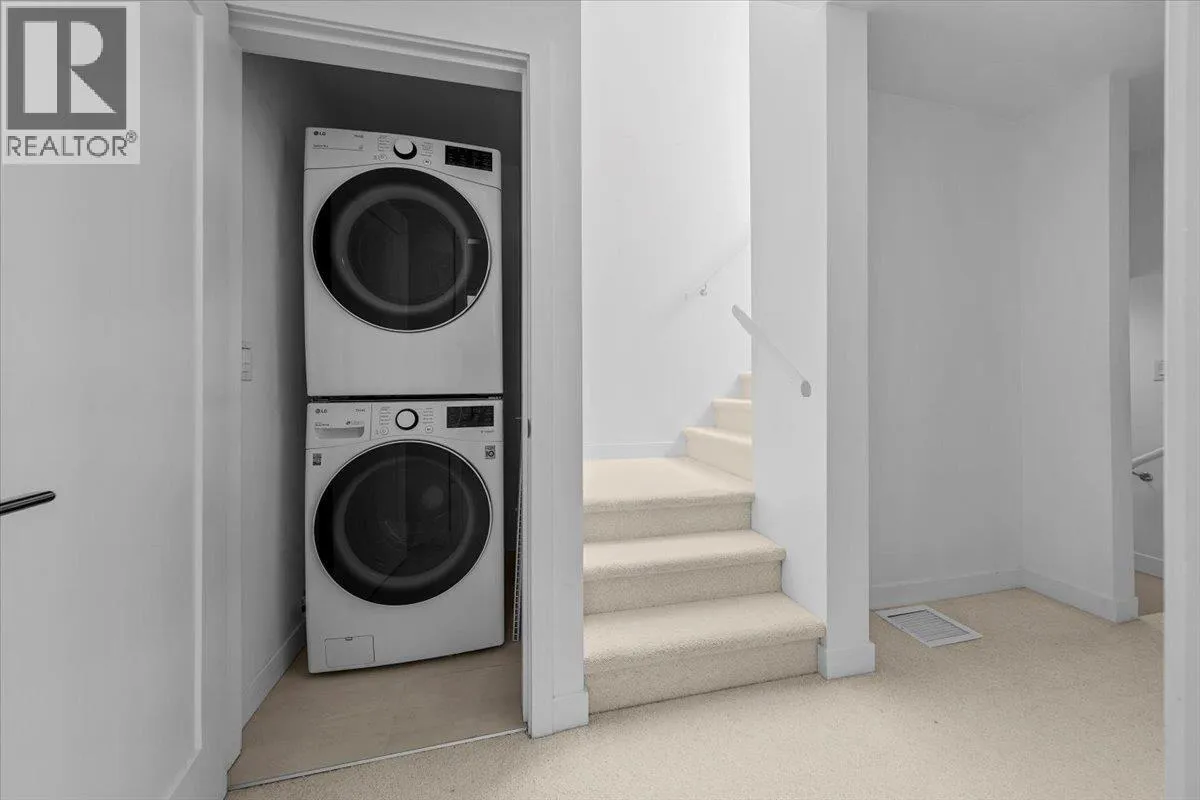 1,249 square ft two-level corner townhome (3 bed + den, 2.5 bath) with 413 square ft of bonus space – 157 square ft private rooftop deck with city + mountain views + 256 square ft rare private storage room – plus two side-by-side parking stalls (one with EV charger). Bright north & west exposure and an open layout with engineered