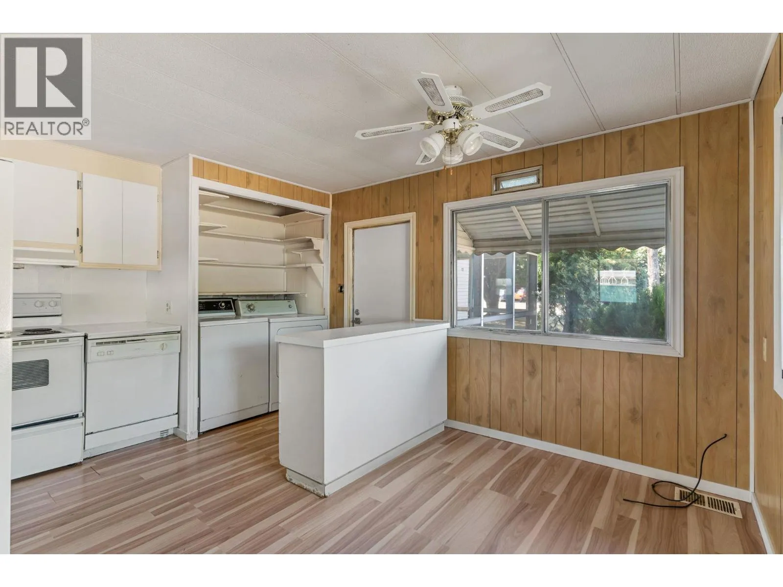 A perfect opportunity to own a 2-bedroom, 1-bath home in Kelowna’s welcoming 55+ community, Okanagan Mobile Villa. This spacious 864 sq ft home offers comfortable, low-maintenance living with plenty of potential to add your personal touches. Outside, a covered carport keeps your vehicle clean and snow-free, additional parking is available, and a storage shed adds extra convenience. Enjoy relaxing on