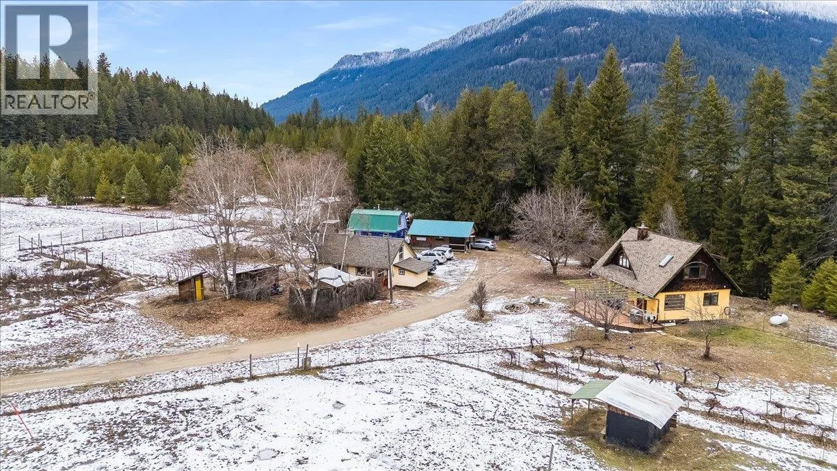 Slocan Valley Acreage in Passmore! 18.95 acres! 3 Lovely homes! Perfect for multi family or investment opportunity! Some farm equipment included, ask for details. Set on a flat and exceptionally private acreage in Passmore, this rare rural property offers outstanding lifestyle and income potential. Featuring a main residence, two additional homes, and an RV unit, it’s ideal for multi