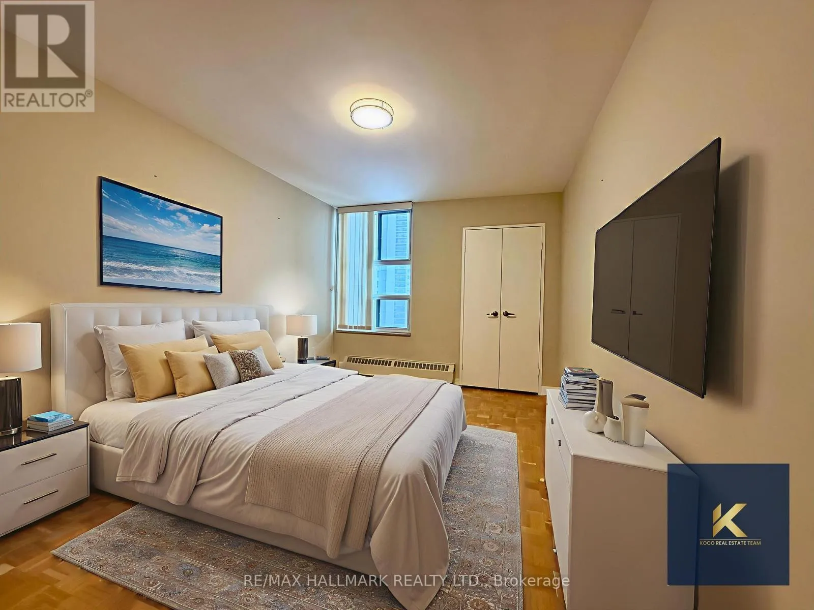 Rarely offered for lease a 2-bedroom unit with 2 full bathrooms including a primary bedroom ensuite. Offering over 1000 sqft of living space, parking, and locker. Checking all the boxes: Facing the park area to the West, plenty of natural light, all bedrooms with windows, and plenty of closet space. Kitchen in excellent condition with S/S appliances complemented by