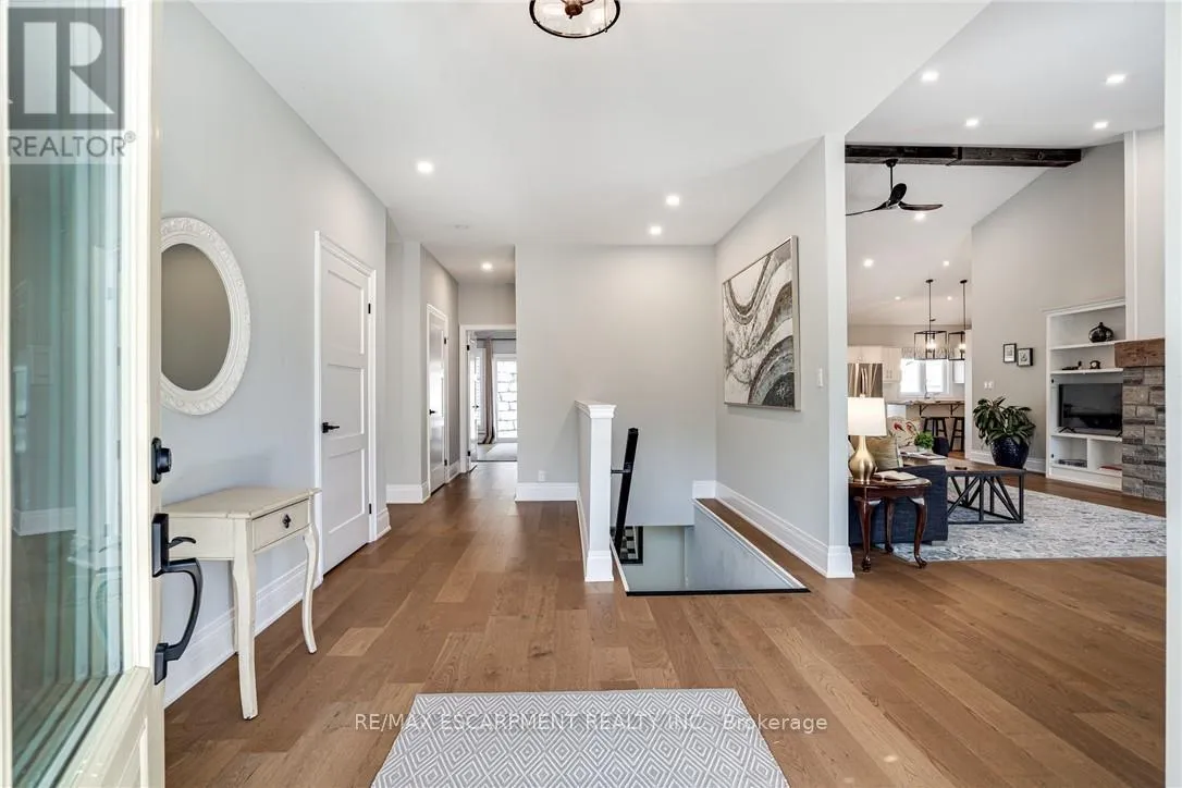 SURPRISINGLY SPACIOUS! This exceptional custom-built bungalow offers nearly 3,400 square feet of beautifully finished living space, thoughtfully designed for both everyday comfort and elegant entertaining. Ideally located in the heart of Dundas, it delivers the rare balance of privacy and walkable convenience-steps to scenic trails, excellent schools, the arena, community centre, and the vibrant downtown core with its boutique shops