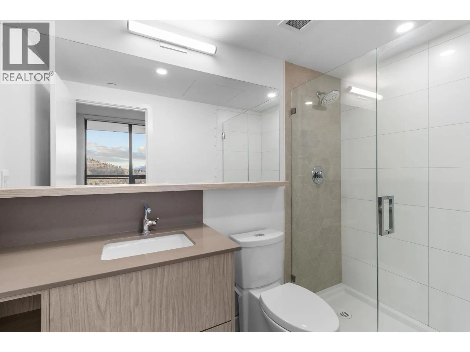 OPEN HOUSE- SUNDAY, FEB 1 | 11AM-1PM. Welcome to Bertram Block — a brand-new 2024 2 bed, 2 bath condo set high on the 28th floor in the heart of downtown Kelowna, with stunning lake, city, and valley views. This bright CORNER unit offers 805 sq. ft. of smart, comfortable living with a split-bedroom layout for privacy, air conditioning, large
