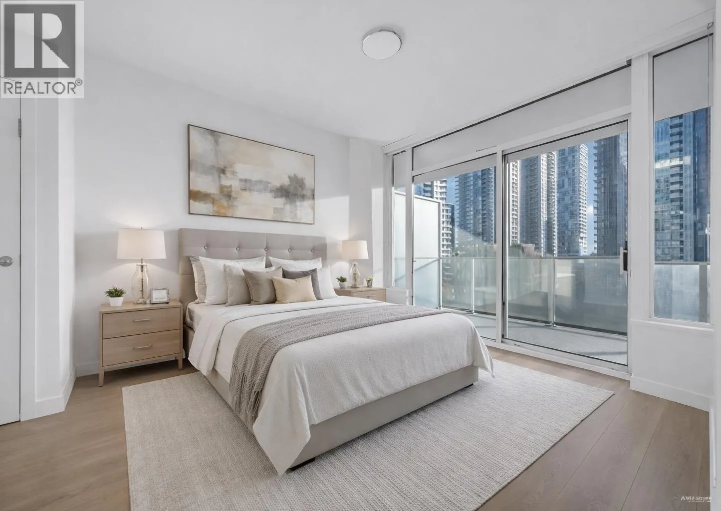 Goldhouse South, THREE Bedrooms, SE CORNER w/AC. Bonus of THREE side by side parking stalls! Brand new paint & flooring, move-in condition. Kitchen equipped w/gas cooking, full size appliances. Balcony wraps around entire home. A comfortable living & bedroom sizes at 1,088 SF. Amenities include 24-hour concierge, gym, lounge & more. Nearest to Crystal Mall, library, Station Square, transit &
