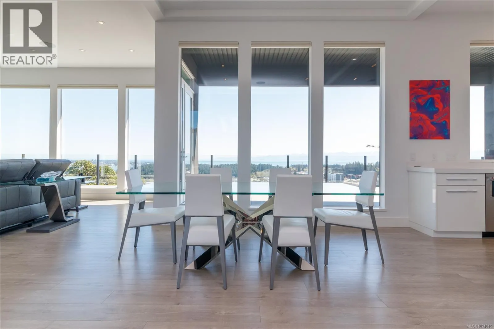 Custom-built architectural residence offering over 5,600 sq. ft. of luxury living on a rare and private 0.66-acre estate with breathtaking 360-degree views of the ocean, snow-capped Olympic Mountains, and the City of Victoria. This stunning home features soaring 12-foot ceilings, expansive floor-to-ceiling windows, and exceptional natural light throughout. The gourmet chef’s kitchen is designed for entertaining with quartz countertops, oversized
