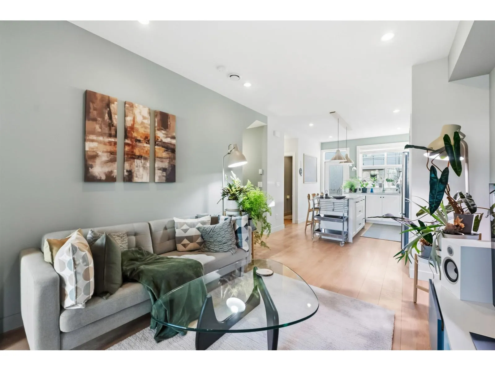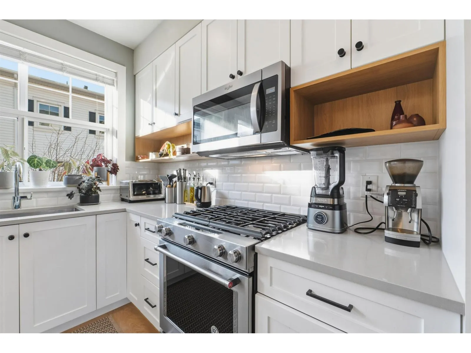 Very inviting 7-year-old bright townhouse located in the centre of a family-oriented complex, offering a quiet setting away from traffic. This 3-bedroom 2.5-bath home features an open-concept main level with 9ft ceilings, east-west exposure for all-day natural light and spacious living and dining areas. The modern kitchen includes quartz countertops, ample cabinetry, pantry, KitchenAid gas range plus access to a