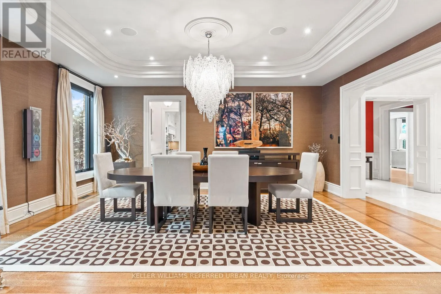 An exceptionally rare opportunity to acquire one of the largest and most distinguished residences in Lawrence Park, set on a coveted 82-foot-wide lot offering remarkable space, privacy, and presence. This Indiana limestone and reclaimed brick estate features a heated circular driveway, landscape lighting, and a three-car tandem garage with built-in cabinetry. Offering nearly 9,000 sq. ft. of total finished living