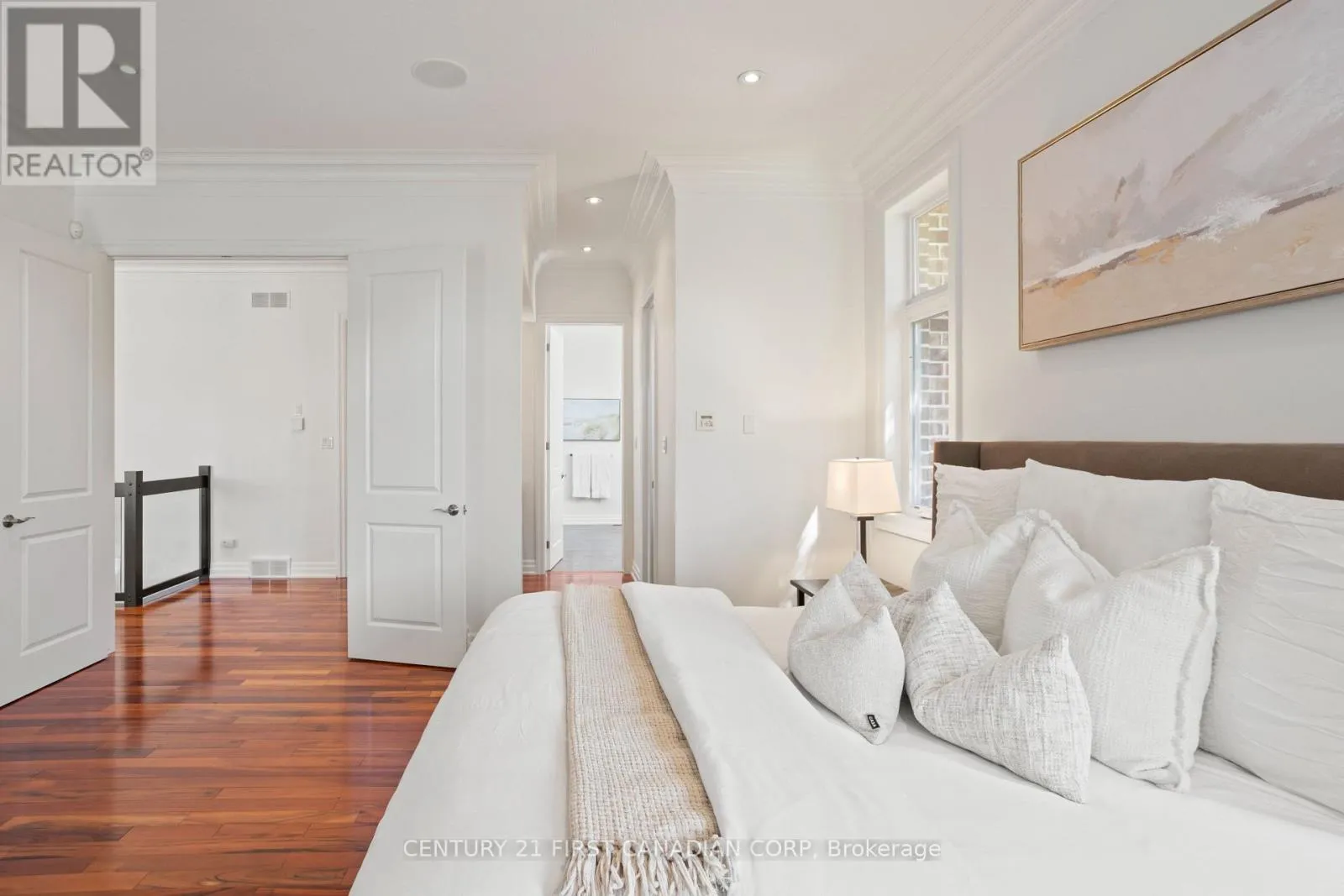 Executive 2+2 bedroom bungalow with sprawling walkout basement backing onto forested greenspace! *Nearly 4,000 sq. ft. of finished space *Grand 10 and 12-ft ceilings, oversized windows, natural light galore *Striking stone + brick exterior with courtyard-style garage *Glass-railed staircase, hardwood floors, crown moulding *Chefs kitchen with granite counters + espresso cabinetry *Primary suite with spa-like ensuite + custom walk-in closet