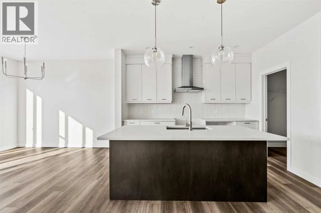 home is perfectly designed for exceptional resale value and positioned to enjoy warm afternoon light and spectacular evening sunsets with natural light pouring throughout the home all year long. Designed with versatility in mind, this exceptional property is ideal for large or multi-generational families, investors, or homeowners looking to offset monthly expenses with rental income – without compromising on style or comfort. The main level welcomes you with a bright, open-concept layout centered around a timeless gourmet kitchen featuring elegant two-tone cabinetry, quartz countertops, an oversized central island, and a walk-through pantry that seamlessly connects to the mudroom and double closets – perfect for effortless organization. Rich mid-tone luxury vinyl plank flooring flows throughout, creating a warm, cohesive aesthetic that complements any décor. Spacious living and dining areas provide the ideal setting for entertaining, while a private den offers a home office or flexible living space. Completing the main level is a 2-piece powder room and an impressive ~200 sq. ft. west-facing deck spanning the full width of the home which is perfect for sunset dinners and outdoor relaxation. On the upper level, natural wood and iron spindle railings lead to a generous central bonus room, ideal for movie nights or a secondary lounge. The primary retreat features a large walk-in closet and a luxurious 5-piece ensuite with dual vanities, soaker tub and walk-in shower. Three additional bedrooms, a full 5-piece bathroom, and laundry room complete this well-designed upper level. The professio nally developed walk-out lower level truly sets this home apart. This fully self-contained legal suite includes its own kitchen, living and dining area, bedroom, bathroom, laundry, and mechanical system, with a private entrance – perfect for extended family, long-term guests, or consistent rental income. Every detail has been carefully considered, from the premium finishes to the functional, modern floor plan. Backed by Brookfield’s comprehensive builder warranty and the Alberta New Home Warranty Program, this move-in-ready home offers exceptional peace of mind. Set in the vibrant community of Livingston, surrounded by parks, pathways, and future commercial amenities, The Purcell 24 delivers luxury, flexibility, and long-term value – a home designed to grow and adapt with your lifestyle. (id:62650)