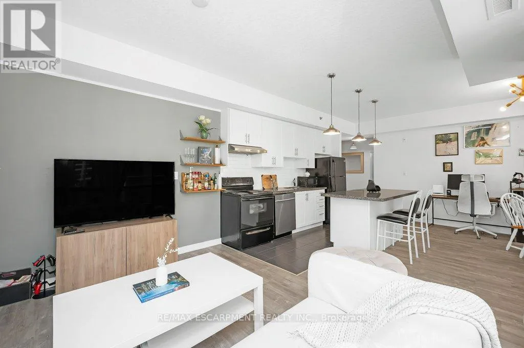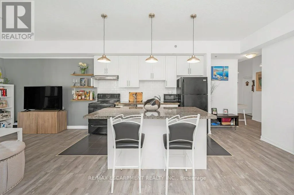 Welcome to City Square @ 90 Charlton Ave West, located in one of Hamilton’s most sought-after neighbourhoods! This bright and stylish 1 bedroom + den corner unit offers 777 sq ft of thoughtfully designed living space with soaring 9’3″ ceilings and a functional open-concept layout. Spacious kitchen complete with granite countertops, tile backsplash and large island w/ pendant lighting, perfect