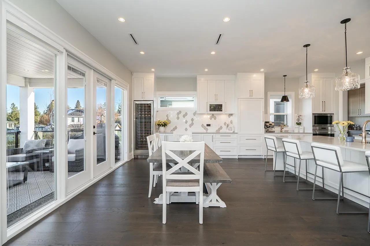 Architecturally designed by Raymond Bonter, this exceptional modern home sits on a rare high-elevation corner lot in prestigious Morgan View, showcasing panoramic city & Grouse Mtn views. Thoughtfully finished w/ designer lighting, it features a chef’s kitchen w/ Sub-Zero fridge + full spice kitchen, and seamless indoor-outdoor living w/ covered patio & gas FP. Custom landscaping creates a private oasis