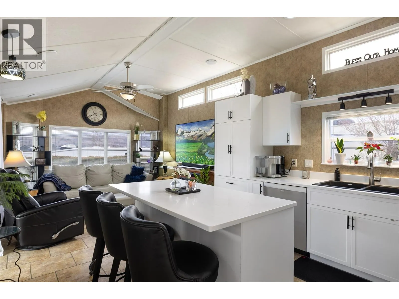 Welcome to this beautifully updated home in the Swan Lake RV Resort community. This well-appointed 1 bedroom, 1 bathroom home features an open-concept floor plan with vaulted ceilings creating a bright and spacious atmosphere. The updated kitchen offers new cabinetry, quartz countertops, and stainless steel appliances. The functional 3-piece bathroom includes a corner shower and quartz countertop. A well insulated