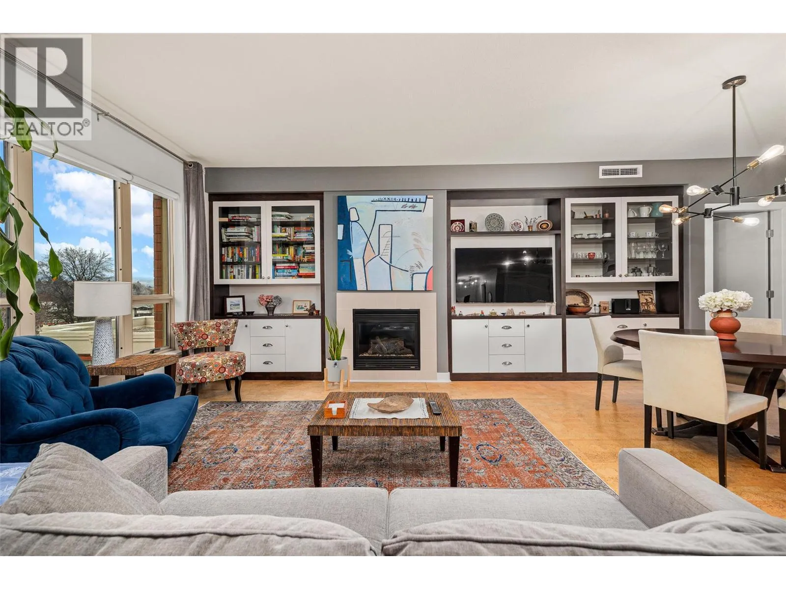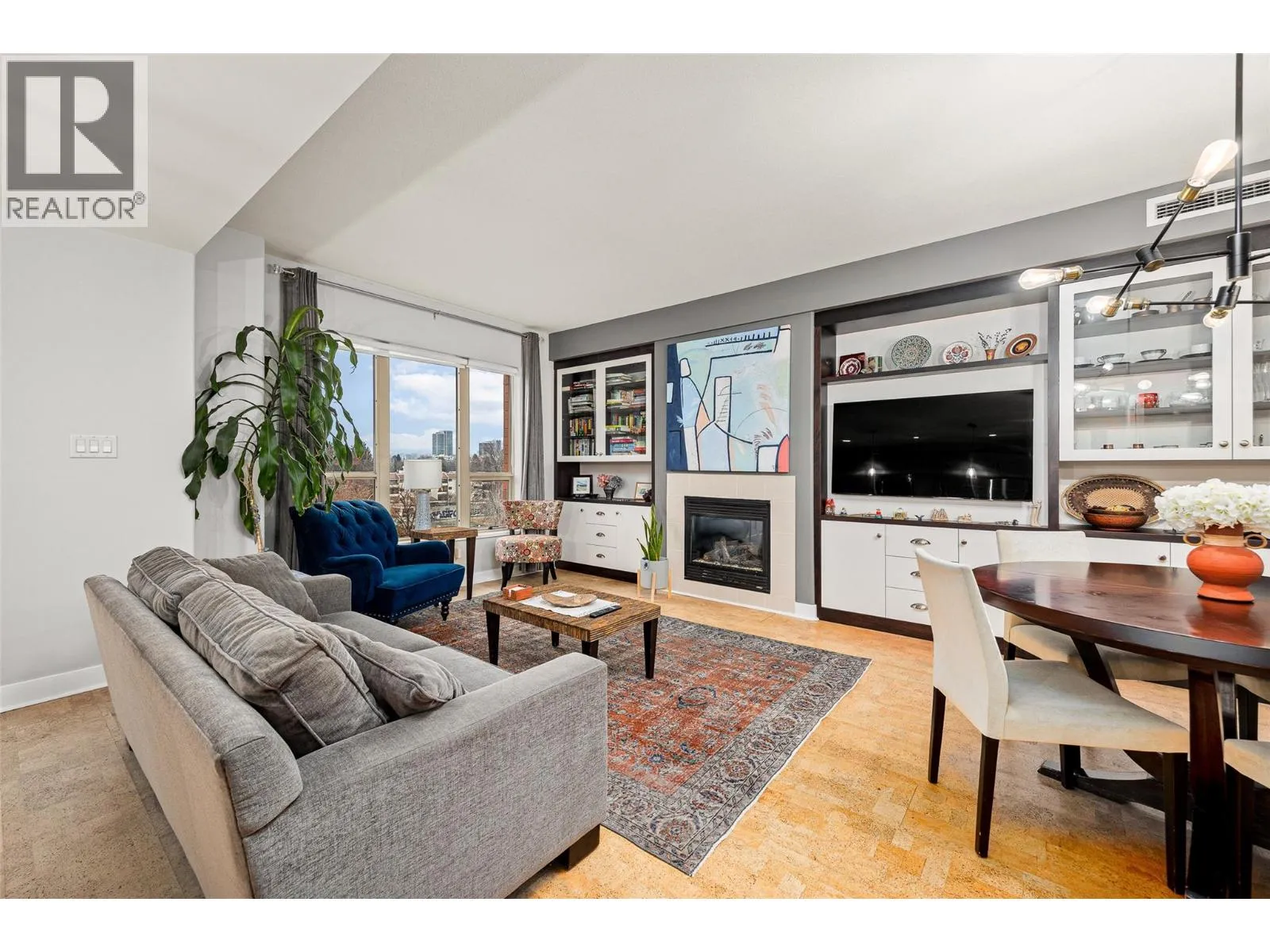 Exceptional interior space is rarely found downtown, and this 1,506 sq ft condo delivers comfort, functionality, and walkable urban living in one impressive package in Kelowna North. This 2 bed + den/ 2 bath condo features an ideal split-bedroom layout, providing excellent privacy with bedrooms, bathrooms, and walk-in closets positioned on opposite sides of the home. The open living and