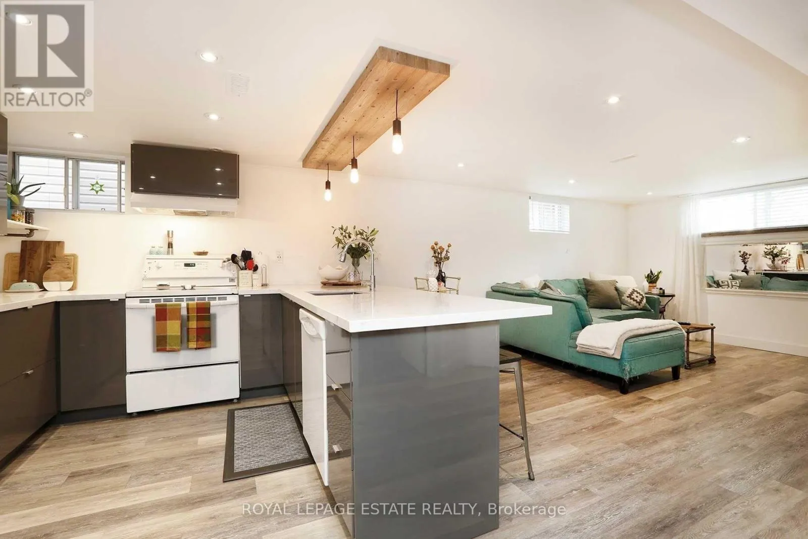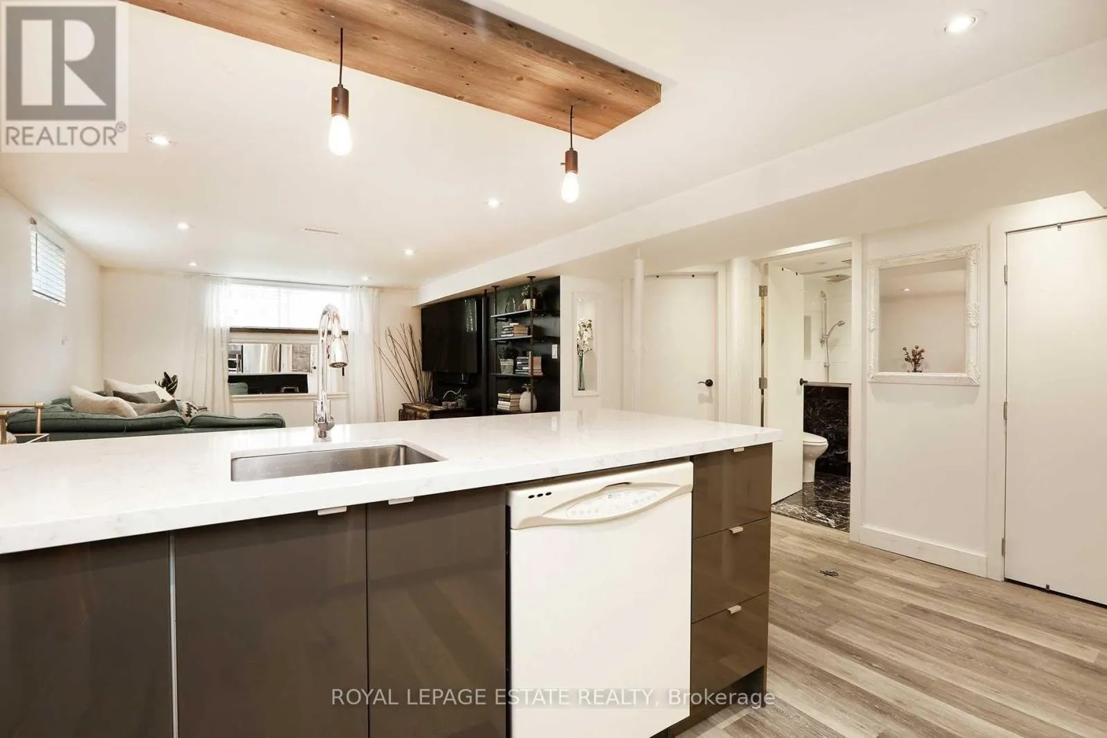 Beautifully renovated two-bedroom basement apartment located on a quiet residential street just north of Kingston Road. This well-finished space offers modern upgrades, clean design, and practical living in a convenient Scarborough location.The apartment features pot lights throughout, keeping the space bright and comfortable. The kitchen has been updated with new cabinetry, quartz countertops, and a custom light fixture that adds