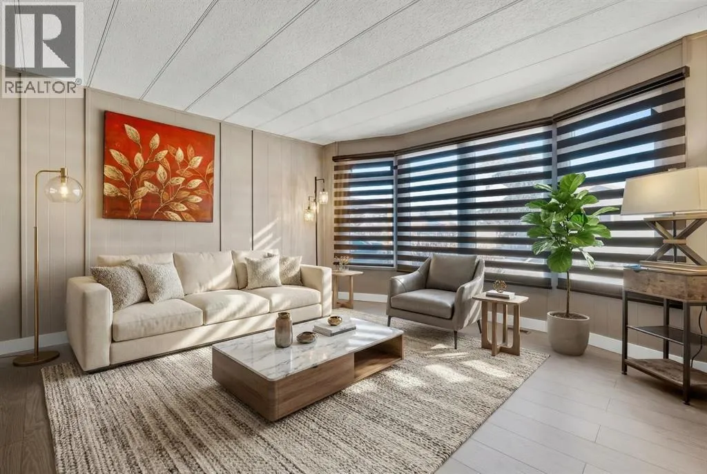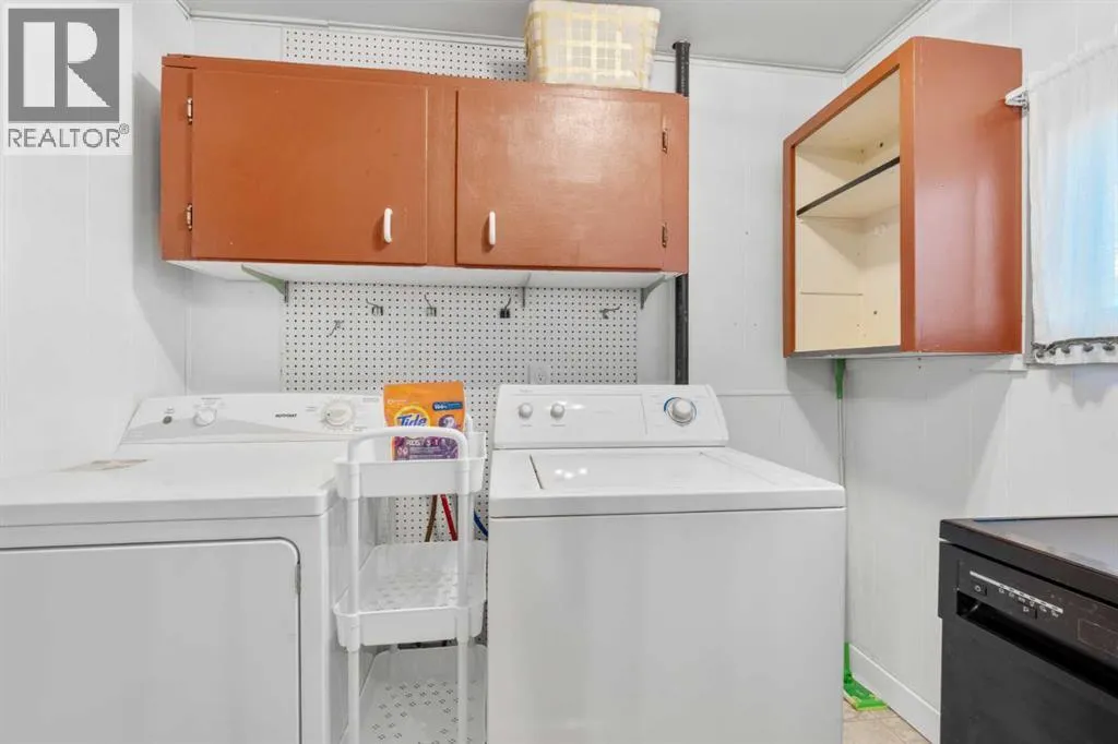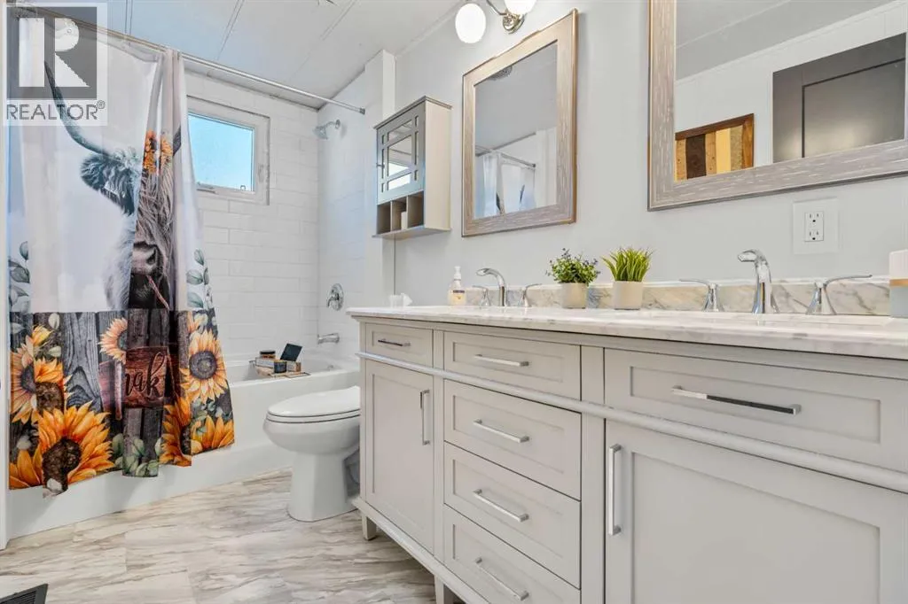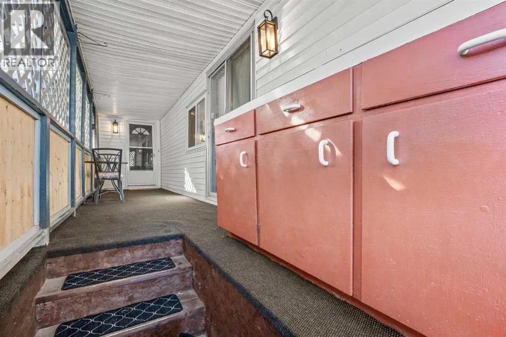 grates, modern paint colours, new interior doors, wainscotting. Separate mud room leads out to back deck (new as well). Kitchen has new countertop, backsplash, double stainless sink, faucet, portable dishwasher (only 3 years old) moveable island, newer convection stove, microwave & fridge. The separate laundry room off the kitchen has the washer & dryer. Nice to have the laundry room tucked away instead of being in a hallway. This laundry room also gives you lots of cupboard space and room for brooms, vacuums etc. Off the kitchen patio doors to deck & 2 more closets, one in hallway and one just to the right of the kitchen. The open concept living/dining room has new paint, shiplap feature wall, lighting & blinds on the bay window. Both bedrooms are a good size separated by the bathroom (makes for perfect room mate/teen situation). The primary has wall to wall closets and the second bedroom is huge (used to be 2 bedrooms). The main bath Is completely renovated with new flooring, gorgeous vanity with his and her sinks, mirrors, medicine cabinet, soaker tub and comfort height toilet. Exterior offers newer front door, covered deck full length of home with xtra cupboards, new carpeting, painted exterior wood trim on side of home facing the carport, covered carport easily covers truck & smaller car, big shed & back yard that offers good amount of greenspace for the pets/kids or the gardener but not too much to have to maintain. Newer windows, roof, furnace (2011) & hot water tank (2011). Lease fee of $1,375 includes water, sewer, garbage pick up, snow removal, use of clubhouse, maintenance of pl aygrounds and pathways. There are pet restrictions such as weight & breed but none relating to children and/or age of occupants. Kids/grandkids welcome. This is a family oriented park. RV parking is available on site for a nominal fee. Transit service is throughout the park and school bus service as well. With Bowness Park (boat rentals, picnic area, & skating in winter) around the corner, the new Farmer’s Market (with shops, restaurant & coffee shop within walking distance) & Superstore to name a few you will be pleased with all these amenities. Easy access to Stoney Trail, 50 minutes to the Mountains & 20 minutes to Downtown you’ve got it all! Greenwood is a community with mature trees throughout, walking paths, parks, bus service, walking distance to the new Farmers Market & great access to Stoney Trail for easy commutes to downtown etc. Whether you are downsizing, moving out of rental home, looking for a new lifestyle or just looking for affordability don’t miss out on this upgraded home sweet home. (id:62650)