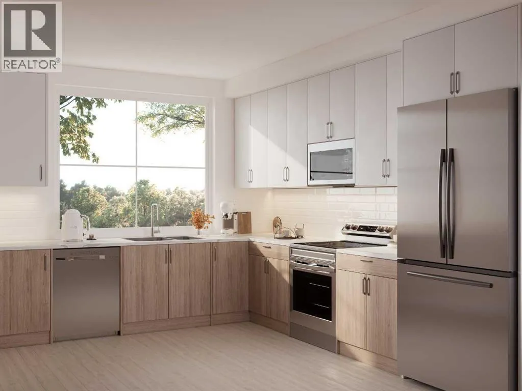 ROOFTOP PATIO • STUNNING MOUNTAIN VIEWS. This pre-construction 2-bedroom, 2-bathroom condo offers a thoughtfully designed layout with almost 1000 sq. ft. of living space. Featuring 11+ ft. ceilings, sleek quartz countertops, and large windows, the home is bathed in natural light while capturing spectacular mountain views. Scheduled for Summer 2027 possession, the unit includes titled underground parking, private storage, and