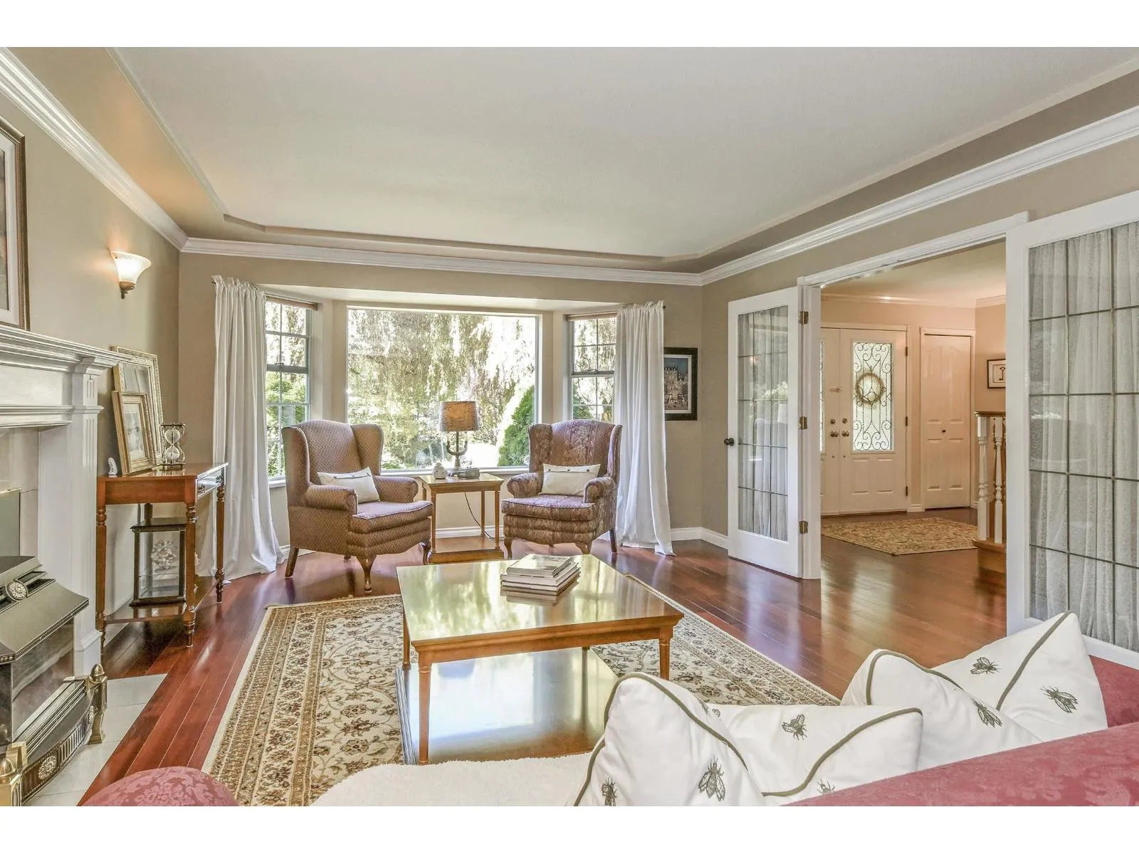 Tucked on a quiet cul-de-sac & backing onto Crescent Park, this beautiful home sits on a 32,476 sqft lot surrounded by mature trees. A 23’x19′ powered shop offers space for hobbies, projects, or storage. Main floor features a formal living & dining room with fireplace, a bright kitchen with antique white cabinets, stainless steel appliances, eat-up island, breakfast nook, &