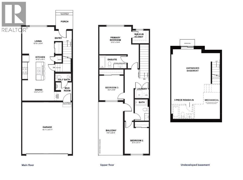 These thoughtfully designed lane townhomes offer modern finishes, functional layouts, and long-term value in a location that truly stands out.The main floor features a bright, open-concept design with 9-foot ceilings, creating a spacious and airy feel throughout. The layout opens into a generous living room, perfect for everyday living or entertaining. At the heart of the home is the kitchen, complete with a central island, stainless steel appliances, and contemporary finishes, seamlessly connecting to the dining area at the rear of the home. A convenient half bath and mudroom are tucked away at the back, providing direct access to the rear attached double garage, keeping daily life organized and efficient.Upstairs, you’ll find a well-planned upper level designed for comfort and privacy. The primary bedroom is spacious enough to accommodate a king-sized bed and includes a walk-in closet along with a 4-piece ensuite, with the option to upgrade to a 5-piece. Two additional well-sized bedrooms, a full 4-piece bathroom, upper-floor laundry, and a linen closet complete this level. Adding even more appeal is a large private balcony located above the garage, an ideal spot to enjoy morning coffee or unwind in the evening.The home also includes a full, undeveloped basement with rough-in for a 3-piece bathroom, offering excellent future potential to add a large recreation space, and additional storage as your needs evolve.Ideally situated across from East Hills Crossing Shopping Centre and Costco, this location offers unmatched convenience with shopping, dining, and services just steps away. Public transit is nearby, providing a qui ck and easy commute to downtown Calgary in minutes. East Hills itself is a vibrant, well-connected southeast community, known for its thoughtful planning, green spaces, pathways, and easy access to major roadways and 17 Ave SE.Combining modern design, a functional floor plan, and an unbeatable location, this is an excellent opportunity to secure a brand-new home in East Hills with estimated completion in Q4 2026. Don’t miss your chance to be part of this exciting community! Book your visit at the presentation centre today for more details! *Photos are representative.* (id:62650)