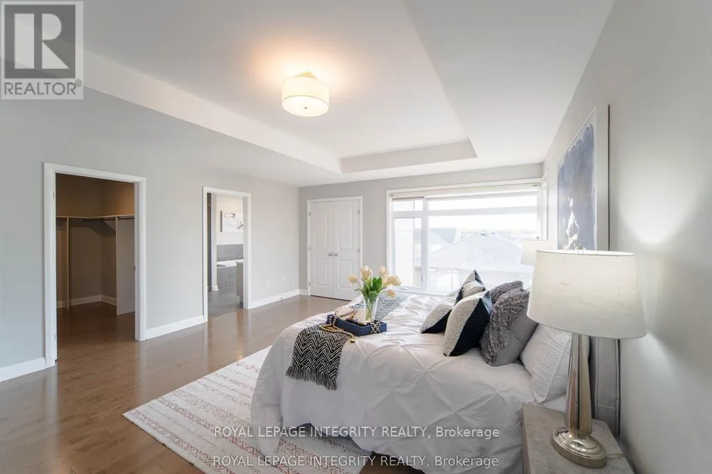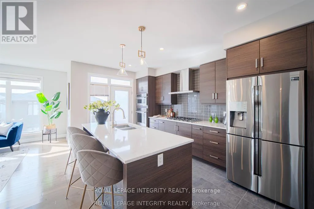 Detached home in Richardson Ridge built in 2019 by Uniform. WALK-OUT BASEMENT! TWO ENSUITES! Situated on a fan-shaped lot with a backyard measuring 43.88 ft wide, this home combines modern design with functional living. Enjoy a welcoming front porch, a bright and spacious tiled foyer, and a mudroom with a walk-in closet and powder room. The main level features 9′