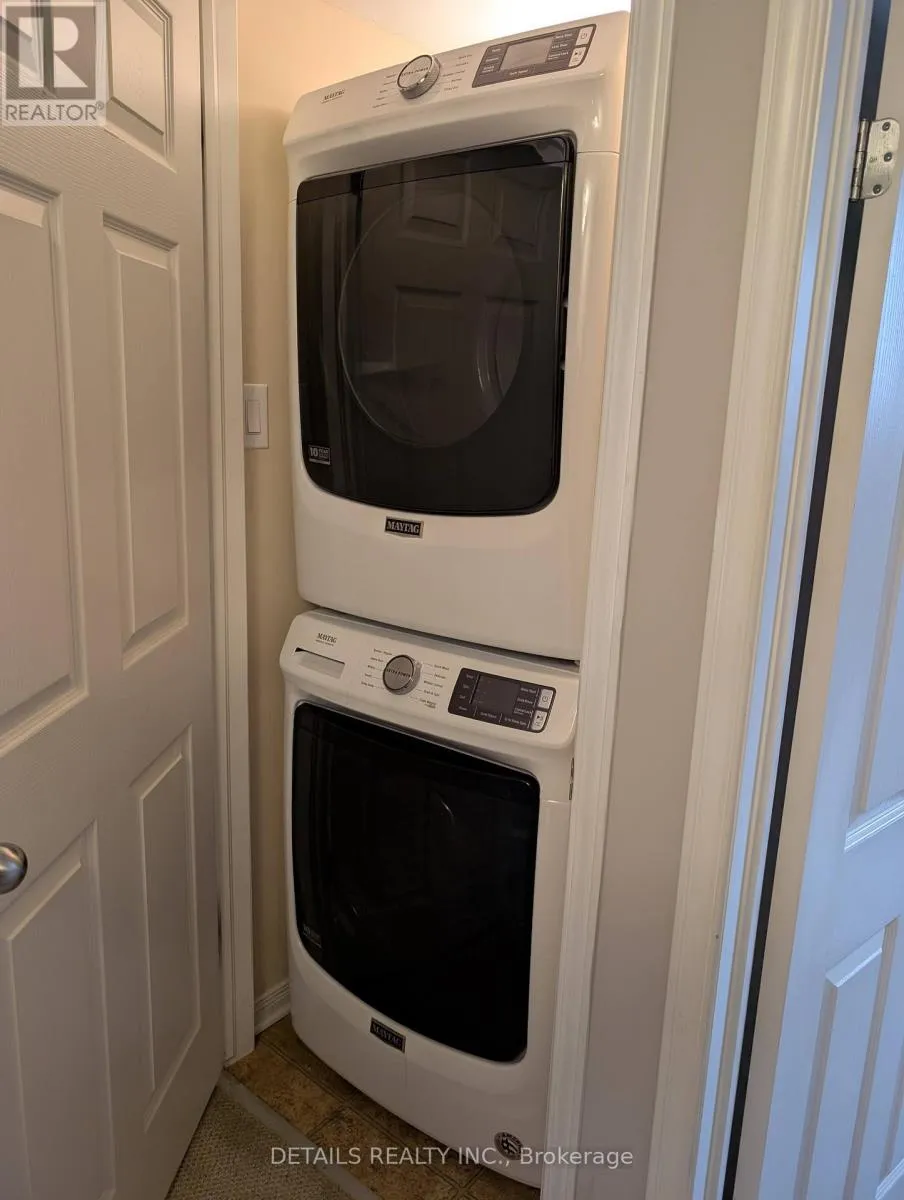Bright and well-maintained lower-level corner unit located in the desirable Riverside South community. This open-concept layout offers 2 bedrooms and 2 bathrooms, with hardwood flooring and ceramic tile throughout the main living area. The functional kitchen features ample counter space, a center island, ceramic tile backsplash, and updated light fixtures. Patio doors lead to a covered deck with direct access
