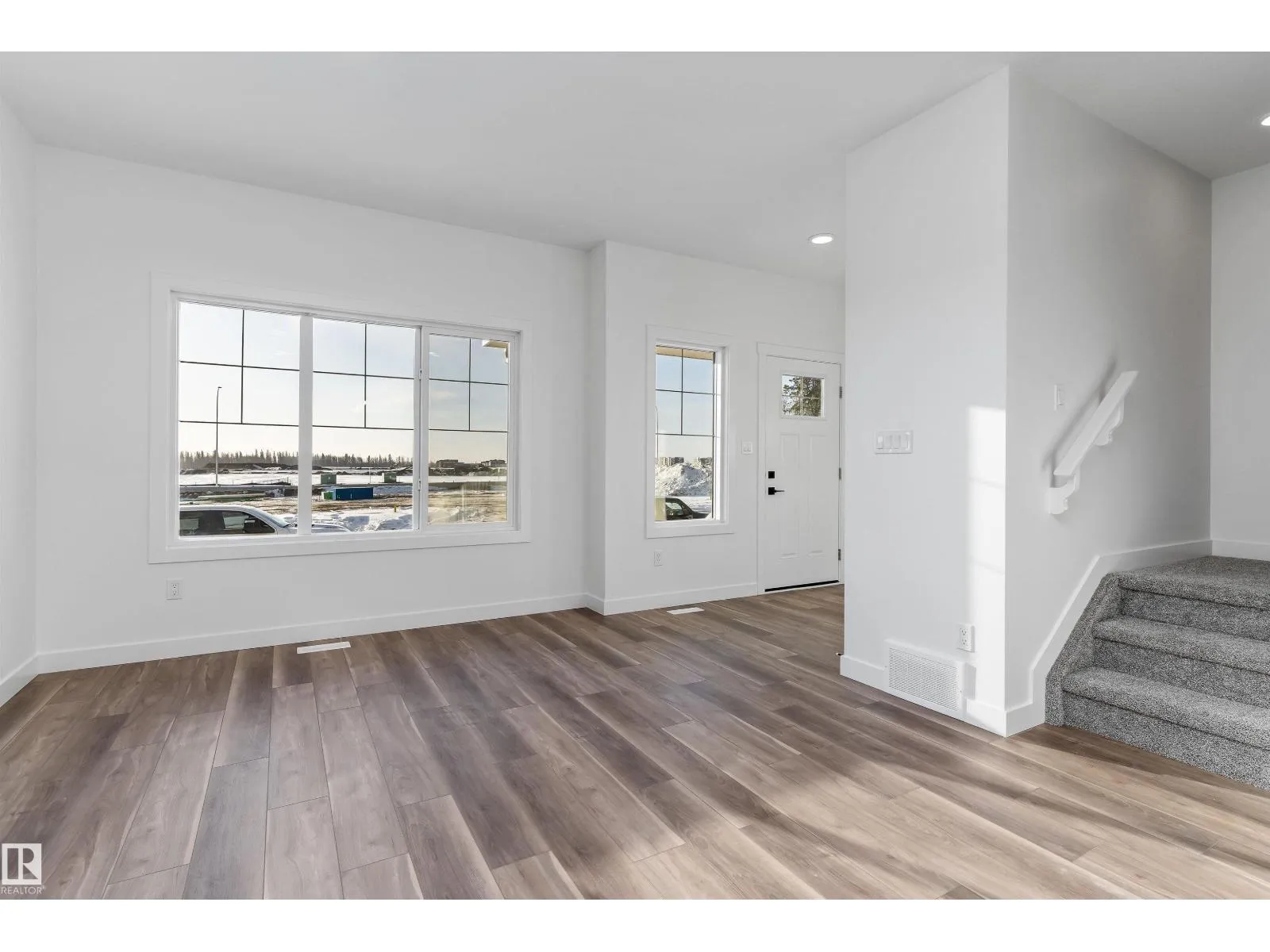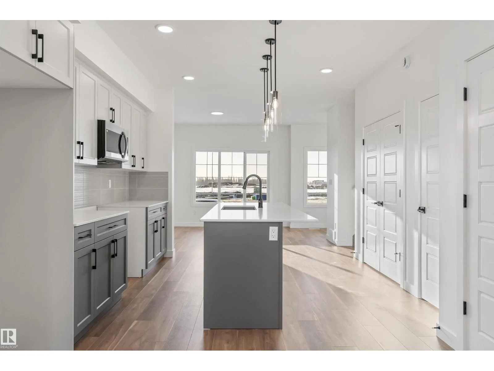 Welcome home to this thoughtfully designed 1,611 sq ft laned home by Sterling Homes in the welcoming community of Edgemont Place. The bright main floor features luxury vinyl plank flooring and a living space filled with natural light from large triple-pane windows. The kitchen offers quartz countertops, a central island with seating, upgraded cabinetry with soft-close drawers, and a tucked-away