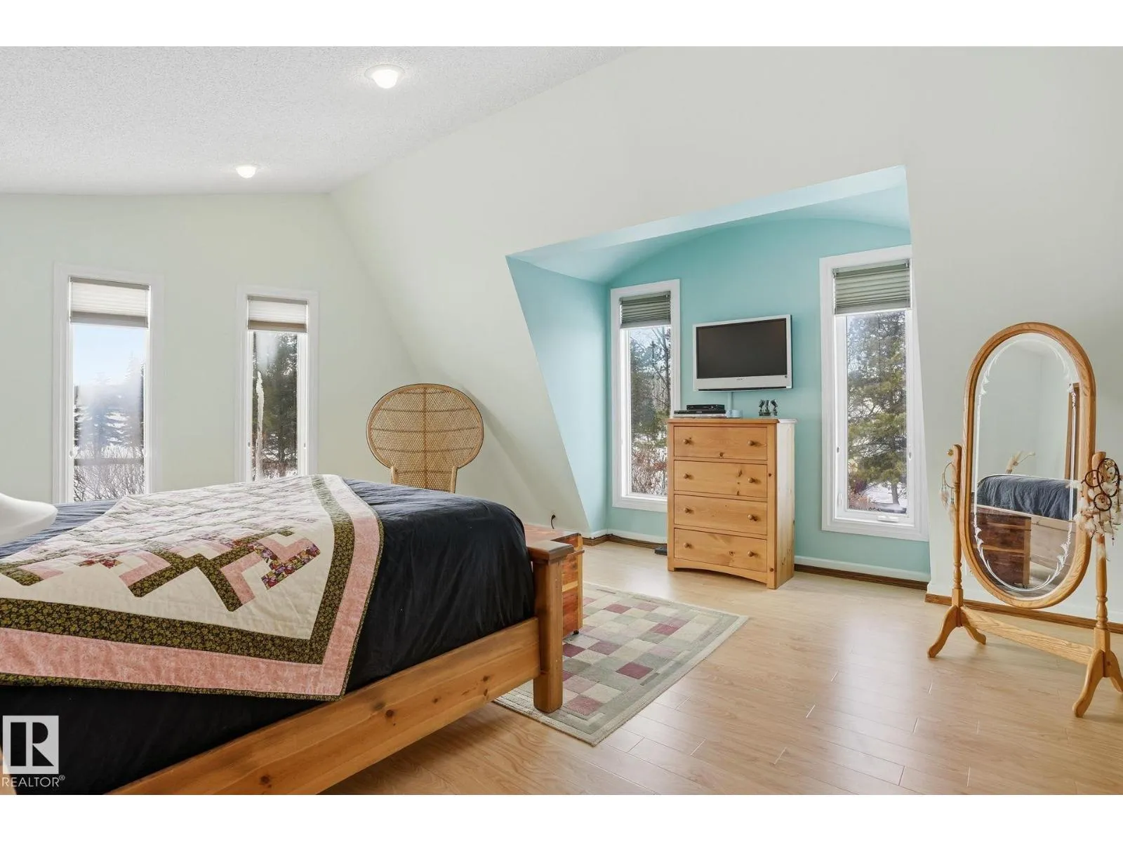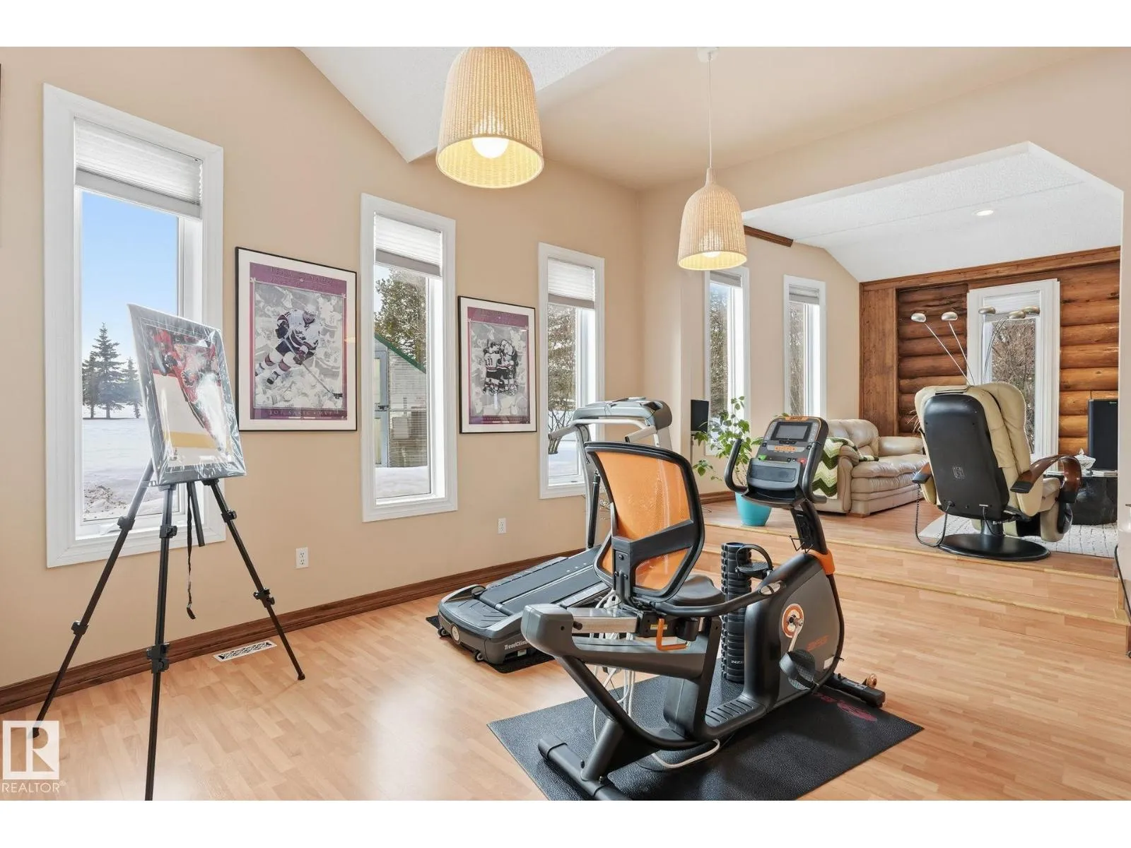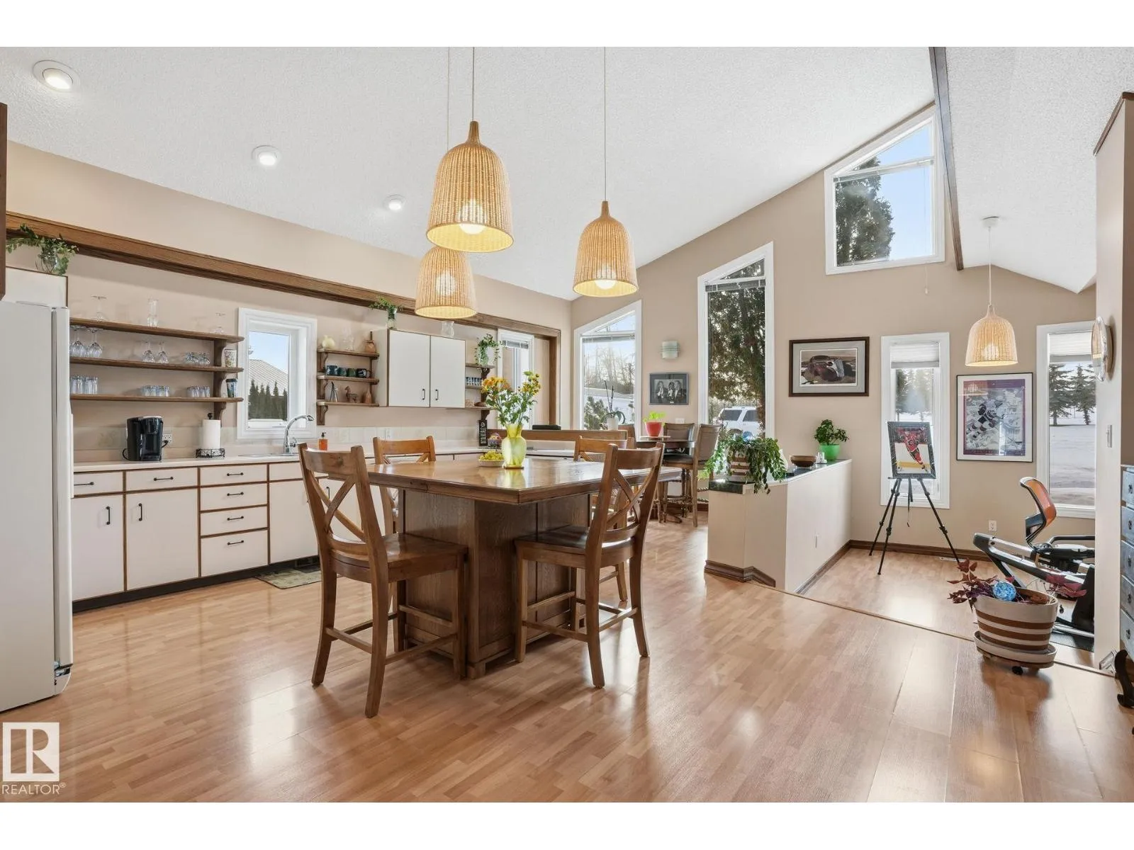 This meticulous, custom-built LAKEFRONT home has 4 BEDS, 2 FULL BATHS and sits on 3.5 ACRES! Architechural style throughout: a swooping facade entrance, metal roof, log construction, stamped concrete patio, vaulted ceiling, tons of windows and a spiral staircase! The main floor is open concept with kitchen and breakfast nook opening directly to dining and living rooms. The kitchen has