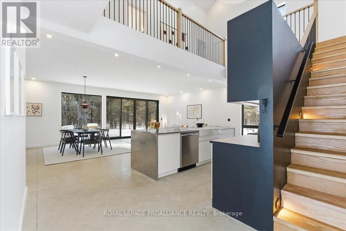 This modern Eco-Habitat energy efficient home with a low environmental footprint was designed by the architects of Para-Sol, inspiring interventions and buildings that connect people with nature! Flowing natural light through expansive triple-glazed windows and a soaring ceiling, seamlessly blend indoors and out. Located in the Bay of Quinte, in one of the most beautiful areas of Prince Edward County