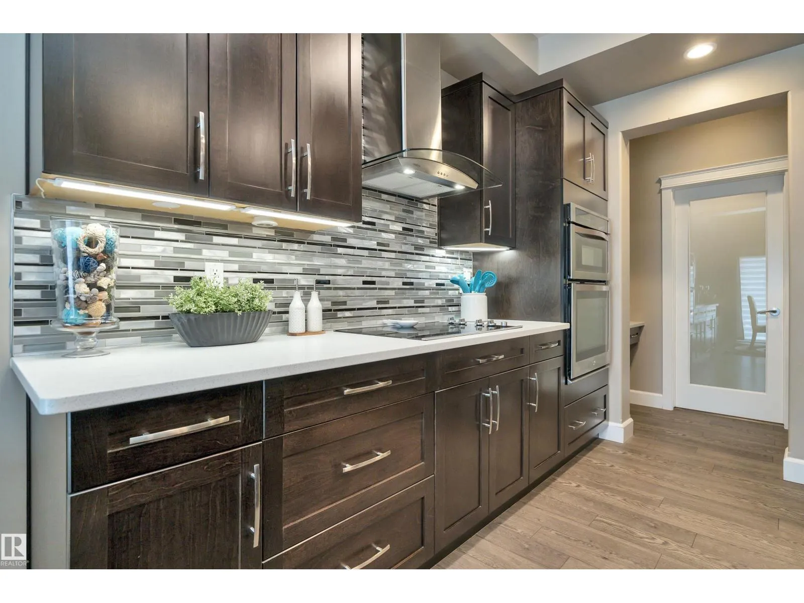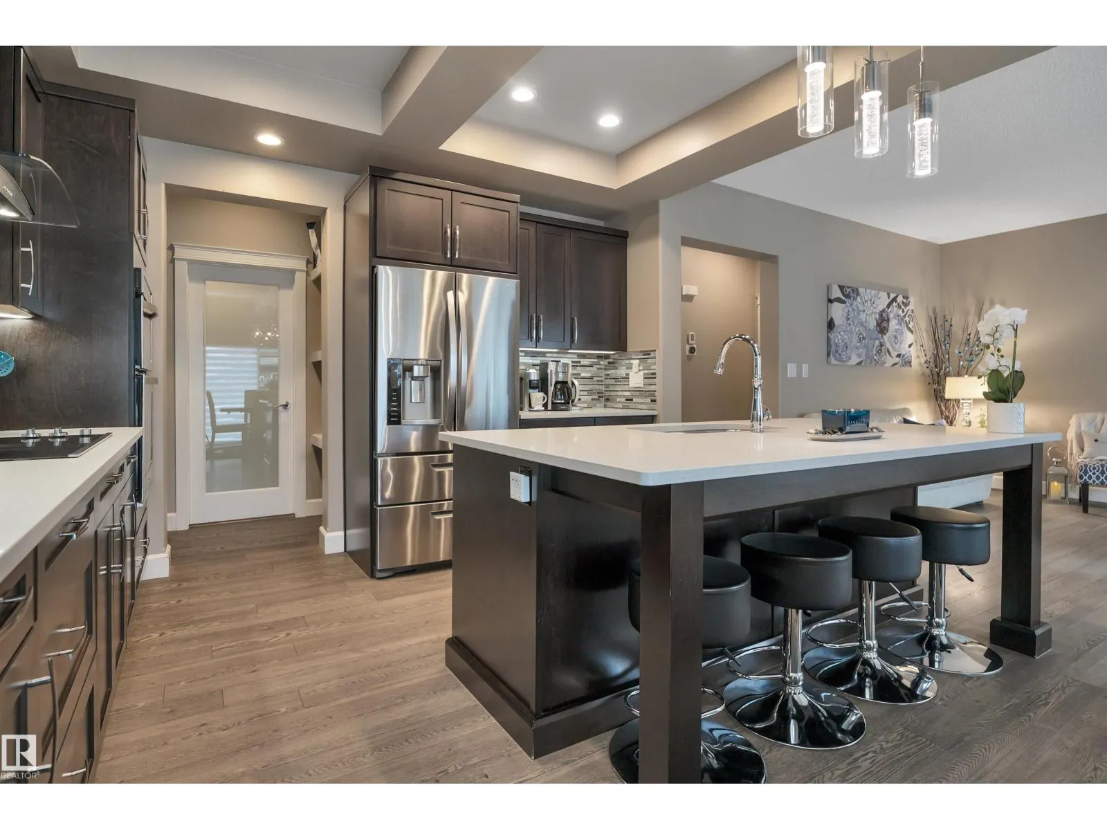 Beautiful EXECUTIVE 2 storey home with 3600 sqft total living space, low maintenance ARTIFICAL TURF, DECK!UPGRADED with Brand new CARPET and COUNTER TOP STOVE(2026) , Coved 9′ ceiling, HIGHEND Espresso cabinetry, QUARTZ counters,massive ISLAND in the Chef’s kitchen with B/I SS appliances, FRENCH door to the large walk thru BUTLER PANTY to the Mudrm leading to the oversized Finished HEATED