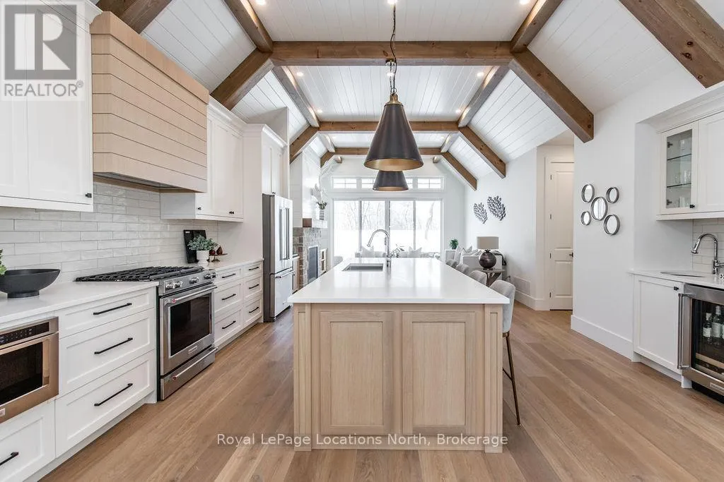 Fall in love with this spectacular custom-built Vandermeer home just steps from Georgian Bay at Sunset Point, one of the area’s most sought-after waterfront neighbourhoods. Offering over 3,700 sq ft of luxury living space, this 3+2 bedroom, 4 bathroom residence blends timeless craftsmanship with elevated modern finishes.Designed with 9-ft interior doors, upgraded hardware, wide-plank white oak hardwood flooring, and soaring