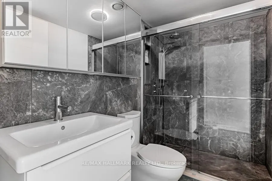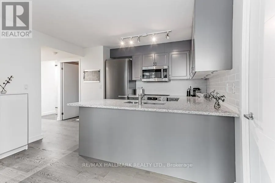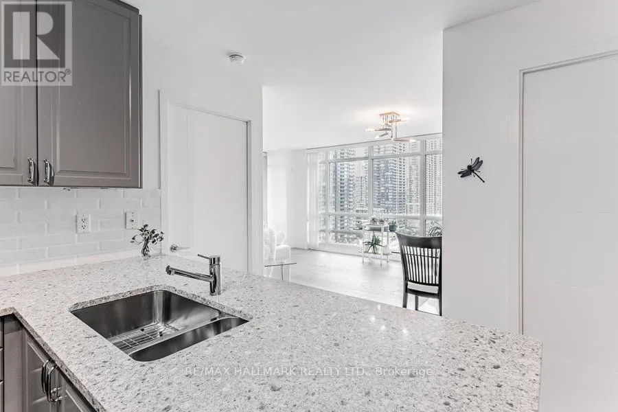 Sun-filled south-west exposure and open corner views set the tone for this beautifully updated suite at 381 Front St W. Thoughtfully renovated by the current owner, the home showcases a sleek modern kitchen complete with premium Miele and Bosch appliances, along with two full bathrooms enhanced by custom spa-inspired lighting for a relaxed, upscale feel. Parking and a locker are