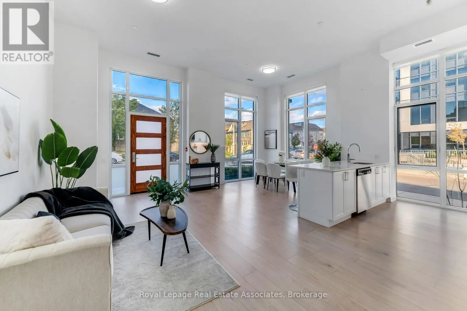 Step into unparalleled elegance in this premium corner townhouse, boasting an expansive 14-foot ceiling on the main floor and 10-foot ceilings on the second storey. Flooded with sunlight through oversized windows, the bright, open-concept living room creates an inviting atmosphere perfect for relaxation or entertaining. Designed with accessibility and comfort in mind, the main floor primary bedroom features a private